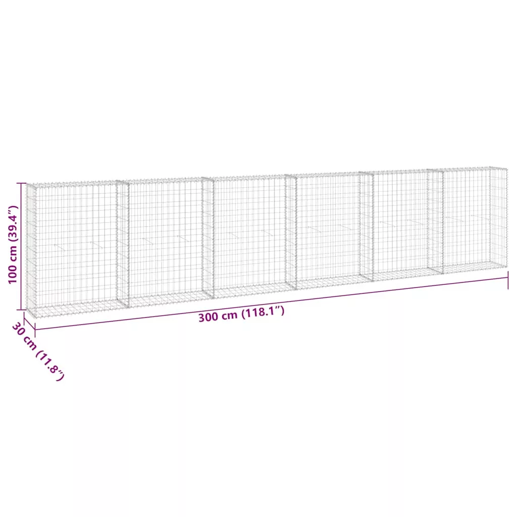 horganyzott acél gabion fal fedéllel 300 x 30 x 100 cm