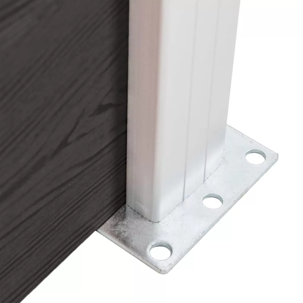 Ez a kerítéspanel használható kerti választófalként vagy betekintés- és behatolásgátló kerítésként a lakókörnyezetébe. A WPC-ből (fa-műanyag kompozit) készült kerti kerítés tartós, ellenáll a rothadásnak és a rozsdának. A kerti hatóroló egyik oldalán faerezet, másik oldalán pedig szokásos nyomtatás található, így kiválaszthatja a jobban tetsző dizájnt. Az alumínium felső profilnak köszönhetően a kerítéslapok szorosan egymáshoz rögzíthetőek, amitől merevebbek és ütésállóbbak lesznek. Az elemes kialakítású kerítéslapok könnyen felszerelhetőek, és lehetővé teszik, hogy a kerítést szabadon bővítse. Az oszlopok három nyílással rendelkeznek, amelyek lehetővé teszik a kerítés különféle módon, például egyenes vonalban (180 fokban), derékszögben (90 fokban) vagy "T" alakban történő összeszerelését. A multifunkcionális acéllábakat kétféleképpen lehet rögzíteni. Az első az, hogy a mellékelt horgonycsavarok segítségével egy felületre csavarozza őket. A második módszer az, hogy egy cementalapba rögzíti őket földtüske segítségével (nem alaptartozék).