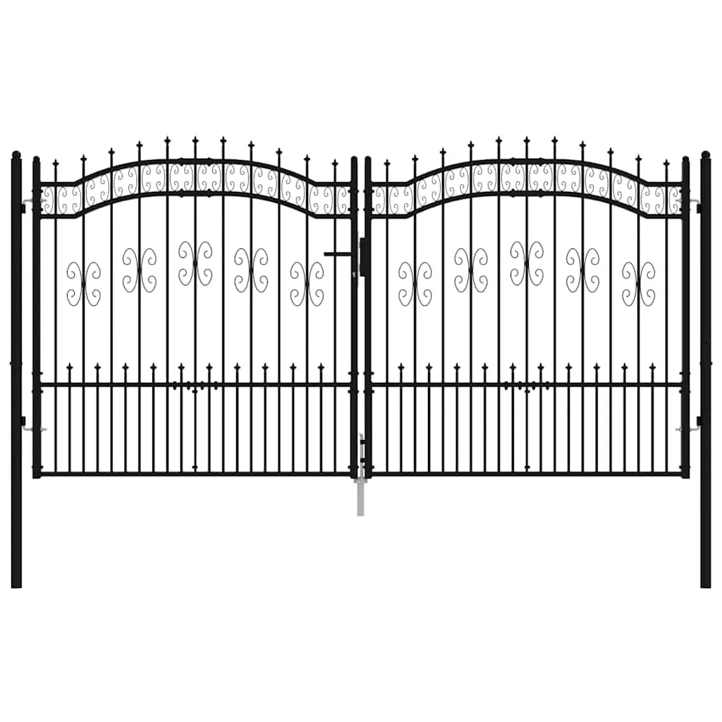 fekete porszórt acél kerítéskapu lándzsás tetejjel 305 x 150 cm