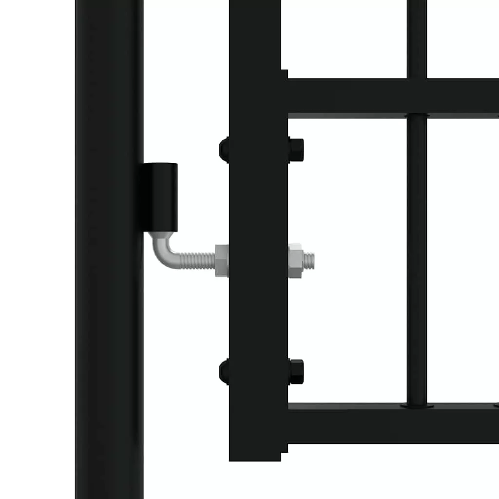 Ez a kiváló minőségű, stílusos kerítéskapu porszórt bevonattal lett ellátva, hogy megvédje a rozsdától és a korróziótól, így ideális bejárata lehet kertjének vagy teraszának. Tartós anyag: Porszórt acélból készült, így a kerítéskapu rendkívül stabil, masszív és tartós.Magas biztonságú kialakítás: A kapu magas fokú biztonságot nyújt elegáns, íves felső kialakításával és erős vízszintes merevítőivel, amelyek megerősítik a keretet, miközben lenyűgöző bejáratot képez az ingatlan előtt.Gyors zárás: A nagy teherbírású zárrendszer 3 hozzáillő kulccsal extra biztonságot nyújt udvarának. Megjegyzés:Az egyszerű összeszerelés érdekében minden termékhez mellékelünk összeszerelési útmutatót.