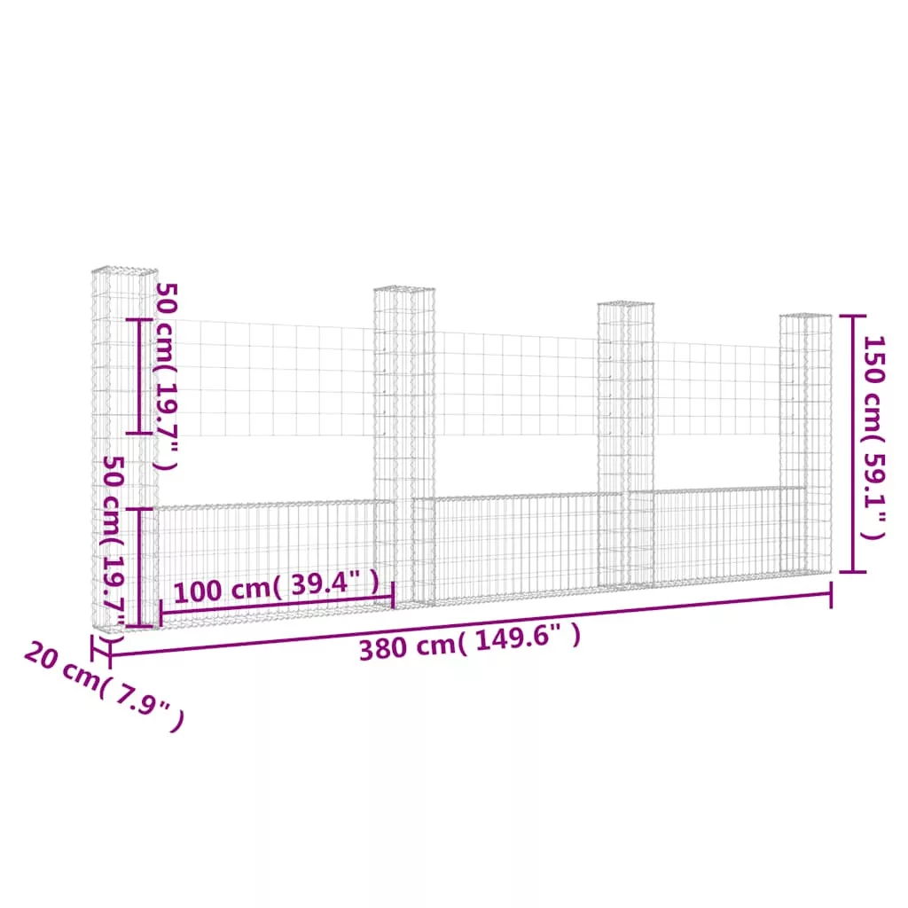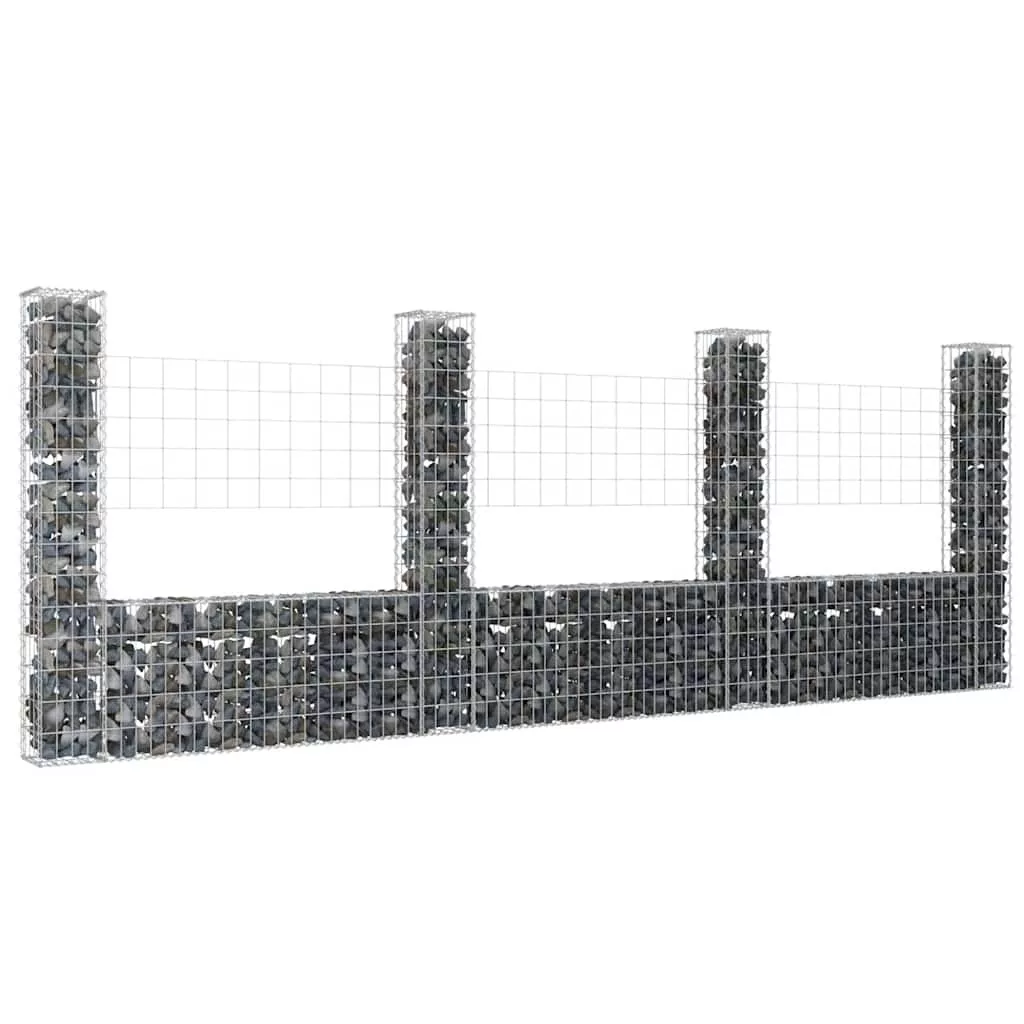 U-alakú vas gabionkosár 4 oszloppal 380 x 20 x 150 cm