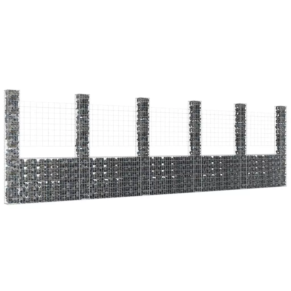 U-alakú vas gabionkosár 6 oszloppal 620 x 20 x 200 cm