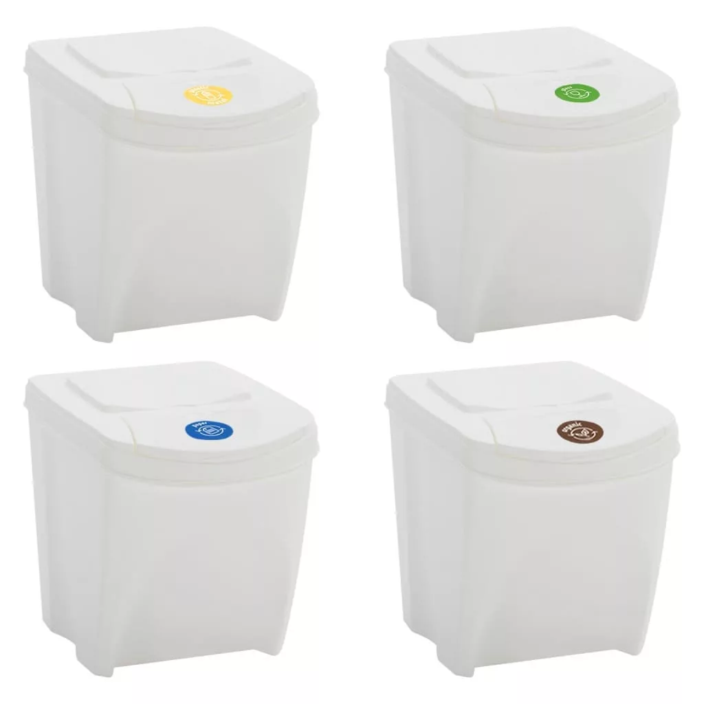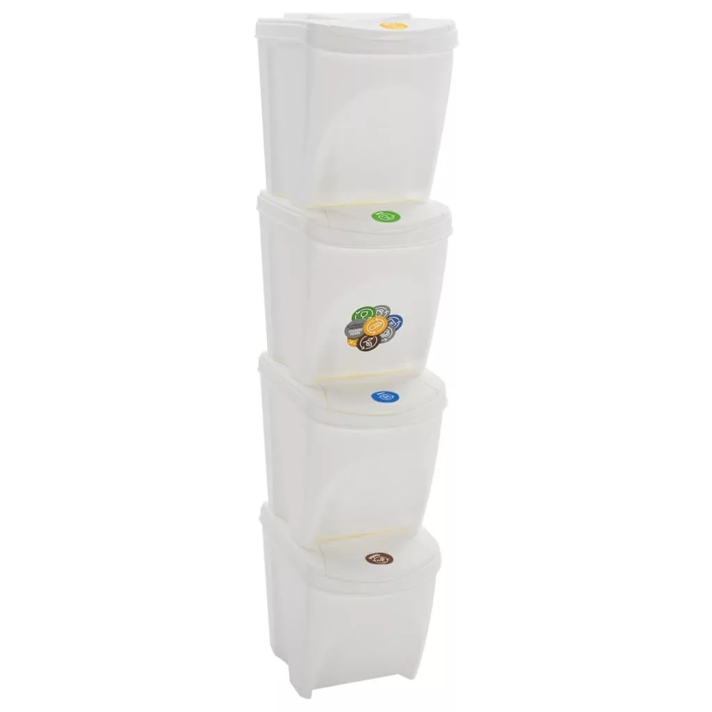 4 db fehér polipropilén rakásolható szemeteskuka 100 L