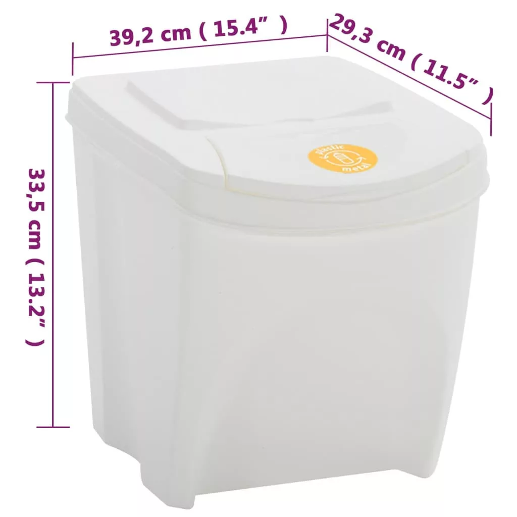 Ezek a szemeteskukák kényelmesek, higiénikusak, és a legjobb és legtisztább szemetesek lesznek otthonában vagy irodájában. Praktikus anyag: A szemetes polipropilénből készült, így masszív és könnyű.Rakásolható kialakítás: A szemétgyűjtők egymásba rakhatók, így több helyet takaríthat meg.Levehető fedél: A szortírozódoboz fedele levehető, így könnyen és gyorsan tisztítható.Kényelmes címke: A hulladékmeghatározó címkéknek köszönhetően sokkal kényelmesebb a szemétválogatás.