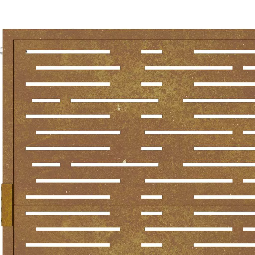 Ez a kertkapu az erős szerkezet és a elegancia tökéletes ötvözete, így ideális bejárat lehet a kertjét vagy teraszát körülvevő kerítéshez. Nagy teherbírású konstrukció: Ez a kerítéskapu corten acélból készült. Corten acél, más néven időjárásálló acél. Ez természeténél fogva korróziógátló hatású. Az első légköri hatásnak kitéve rozsdás védőréteget hoz létre a korrózió ellen. Így nem kell festeni. Ezáltal megtakaríthatja a karbantartási és javítási költségeket. A corten acél jellegzetes barna színe minden bizonnyal szemet gyönyörködtető lesz. Végül pedig, az időjárásálló acél rendkívül tartós, és kiállja az idő próbáját.Lézervágásos dizájn: A biztonsági kapu gyönyörű lézervágással rendelkezik, amely egyedi bájt kölcsönöz otthonának.Zárható rendszer: A kültéri kapu zárható rendszerrel van felszerelve az extra biztonság érdekében.Könnyen összeszerelhető: A bejárati kapu két oszloppal, karimás lapokkal és szerelési tartozékokkal érkezik az egyszerű telepítés érdekében. Jó tudni:Ez a termék még nem rozsdásodott és normál fémszínű, amikor megkapja, de idővel rozsda fog keletkezni rajta. Felgyorsíthatja a rozsdásodási folyamatot, ha szappanos vízzel és sós vízzel permetezi be. Annak érdekében, hogy ruhái foltmentesek maradjanak, kerülje az érintkezést a kialakuló rozsdaréteggel. Ne használja ezt az elemet, ha valamelyik alkatrésze eltört, elszakadt vagy hiányzik.