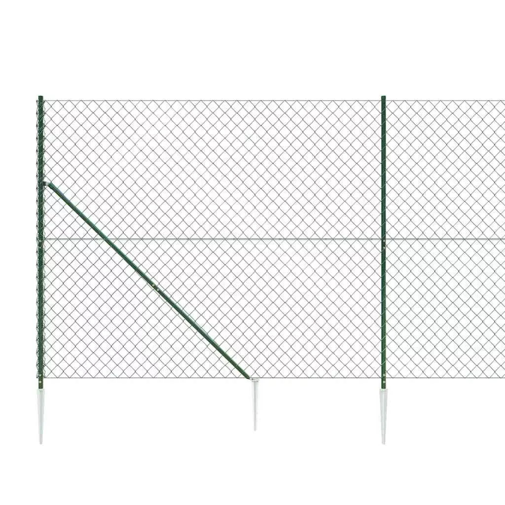 Ez a cövekekkel ellátott, sokoldalú drótkerítés ideális biztonságos, hosszan tartó korlát létrehozásához ingatlana körül. Állatok elkerítésére is használható. Strapabíró anyag: Az acél rendkívül kemény és erős anyag. Erős szerkezetet és stabilitást biztosít. A horgonyzás jobb védelmet nyújt a korrózió ellen, és hasznos a szabadban és zord környezetben használt termékeknél.PVC bevonat: A drótháló felülete PVC bevonattal lett ellátva. Emiatt ellenáll az UV sugárzásnak, a rozsdának és a kopásnak.Reteszelő kialakítás: A reteszelő kialakítás ezt a drótkerítést nemcsak rugalmassá, hanem hihetetlenül strapabíróvá és nehezen törhetővé is teszi. A kívánt méretre is vághatja.