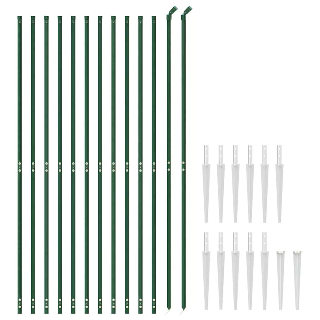 Ez a cövekekkel ellátott, sokoldalú drótkerítés ideális biztonságos, hosszan tartó korlát létrehozásához ingatlana körül. Állatok elkerítésére is használható. Strapabíró anyag: Az acél rendkívül kemény és erős anyag. Erős szerkezetet és stabilitást biztosít. A horgonyzás jobb védelmet nyújt a korrózió ellen, és hasznos a szabadban és zord környezetben használt termékeknél.PVC bevonat: A kerti kerítés felülete PVC bevonattal lett ellátva. Emiatt ellenáll az UV sugárzásnak, a rozsdának és a kopásnak.Összeilleszthető kialakítás: A kerti drótkerítés nemcsak rugalmas, hanem hihetetlenül tartós és nehezen törhető is. Emellett a kívánt méretre is vághatja.