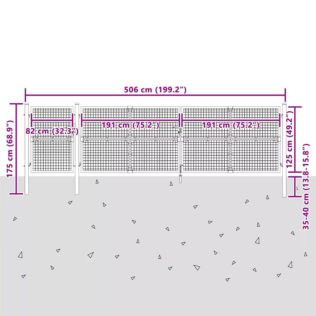 antracit színű horganyzott acél hálós kerti kapu 500 x 125 cm