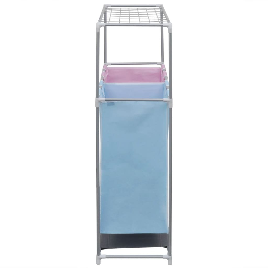 Ez a 2 részből álló szennyestartó segít hatékonyabban rendszerezni a ruhaneműt, és megkíméli a kisebb ruhák válogatásától is. Ez a praktikus ruhaválogató két színkóddal ellátott rekesszel rendelkezik, hogy a világos és sötét részeket elkülönítse, és mosás előtt szétválogatja, ami nagyban megkönnyíti a mosást. A szennyeszsákok kivehetőek, és a kiváló minőségű szövetnek köszönhetően moshatóak. A tartós vasváz könnyű, mégis strapabíró. A praktikus ruháskosár tágas felső polccal rendelkezik az extra tároláshoz vagy a szárításhoz, szövetből készült alsó rétege pedig védelmet nyújt a nedvességgel és a kosszal szemben.