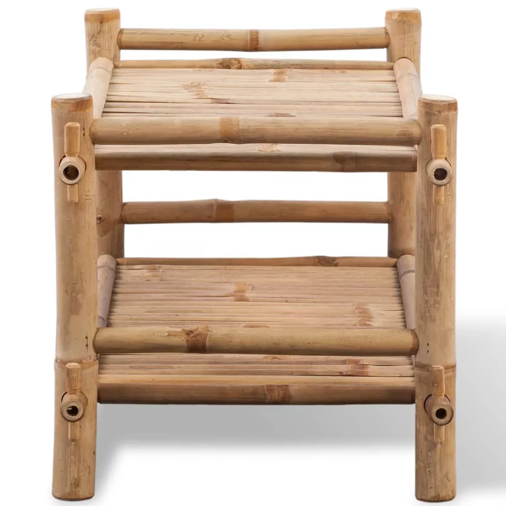 Ez a 2 szintes bambusz cipőállvány tökéletes arra, hogy a lábbeliket rendezetten és könnyen előkeríthető helyen tartsa. Ez a cipőtartó könnyű, és akár 4 pár cipő is elfér rajta. Az autentikus bambusz színárnyalat trópusi bájt kölcsönöz otthonának. A cipőtartó kiváló minőségű bambuszból készült, amelyet kiváló időjárásállóság és tartósság jellemez. Nedves ruhával könnyen tisztítható.