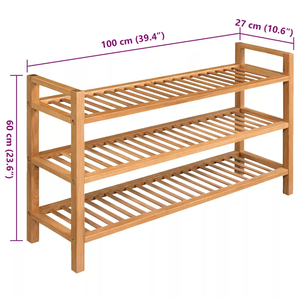 tömör tölgyfa cipőtartó 3 polccal 100 x 27 x 60 cm