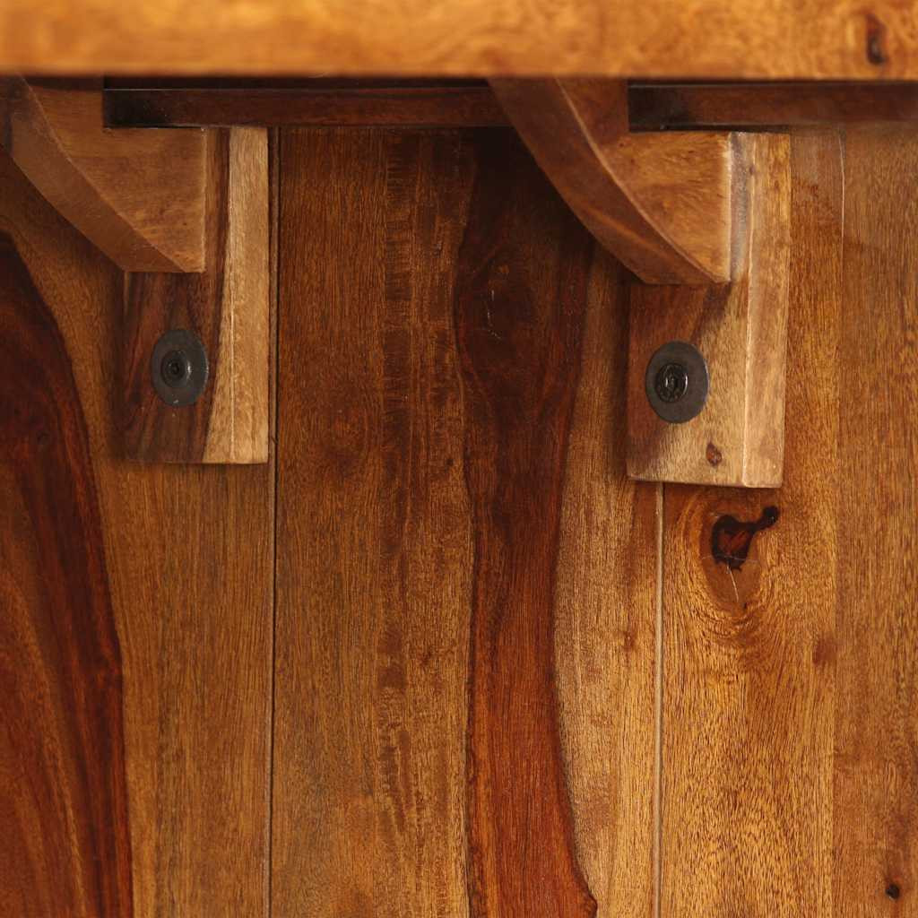 Ez a vintage tálaló/íróasztal időtálló kiegészítője lehet otthonának. Akár TV-állványként vagy konzolasztalként is használható. A letisztult és frappáns kialakításnak köszönhetően elhelyezhet például tárolódobozokat az asztal alatt. Ez a tálaló/íróasztal tömör akácfából készült. Az akácia fa, másnéven a rózsafa vagy paliszander egy trópusi keményfa, mely gyönyörű erezetéről ismert. Teljes egészében kézzel készült, és a gyönyörű erezetnek köszönhetően minden bútordarab egyéni megjelenéssel bír, és kis mértékben eltér társaitól. A masszív fa keret hozzájárul a tálaló stabilitásához. Nagyon könnyen összeszerelhető. Figyelem: A bútorok színe minden darab esetében más, így mind egyediek; a szállítás véletlenszerűen történik.