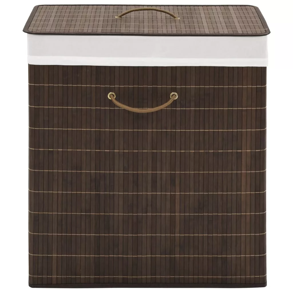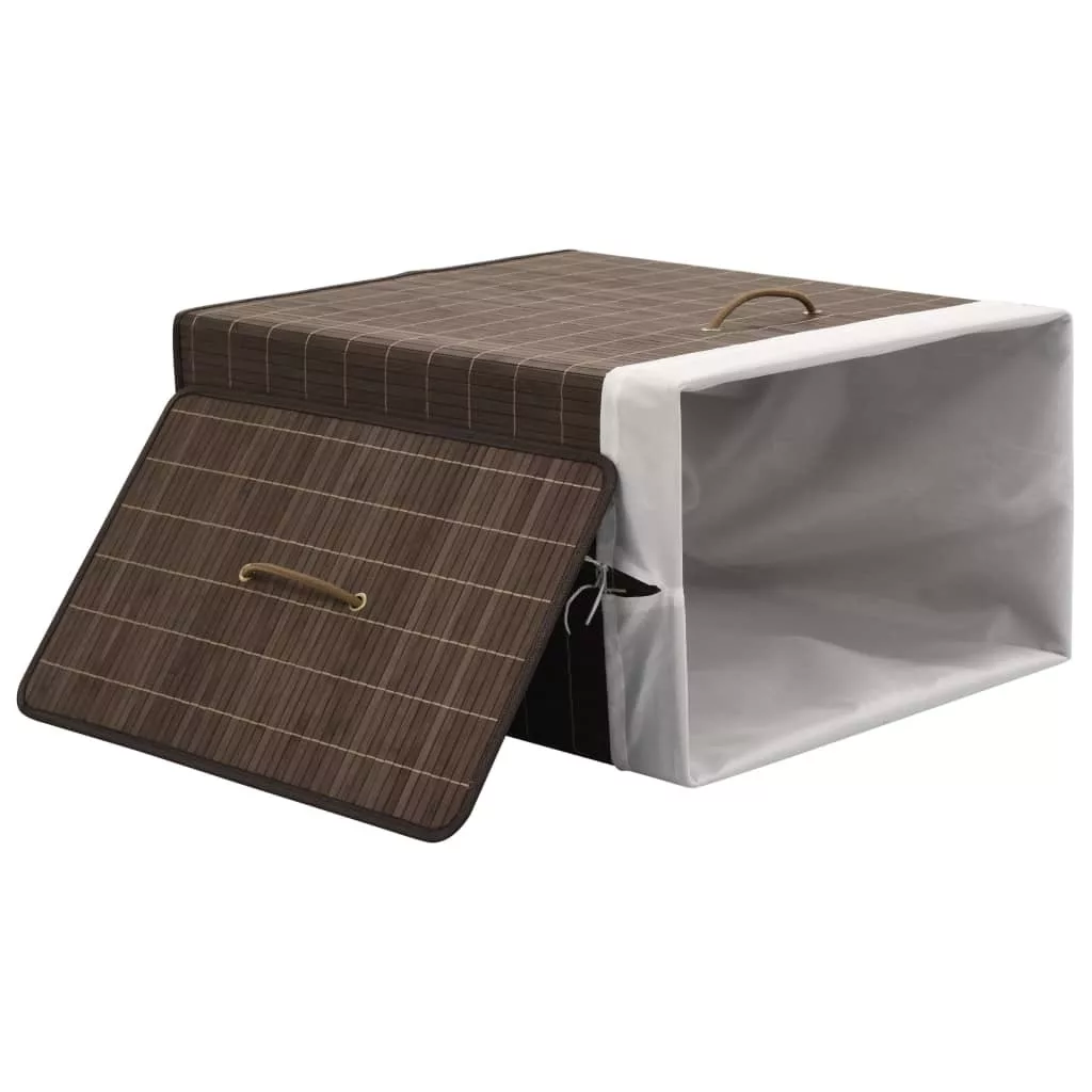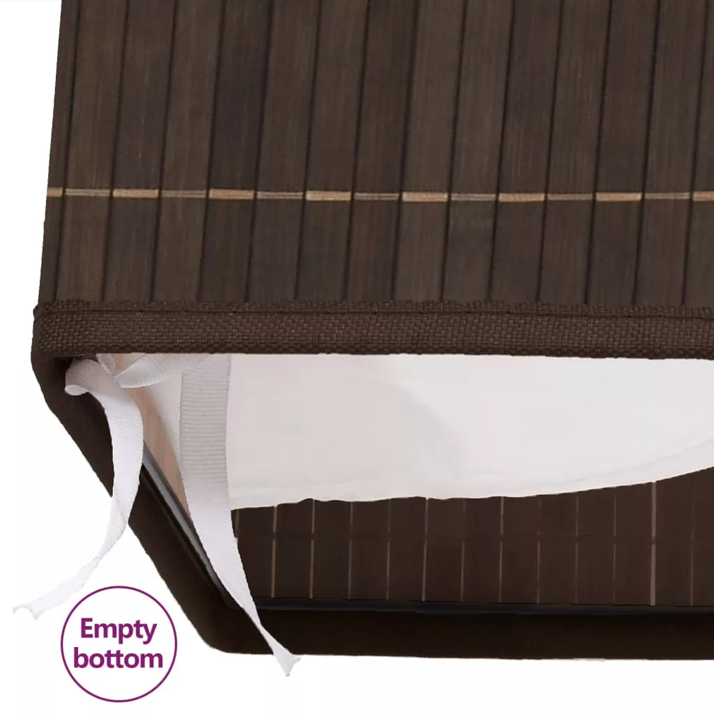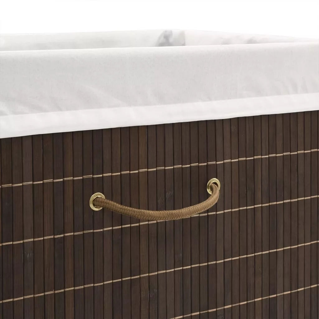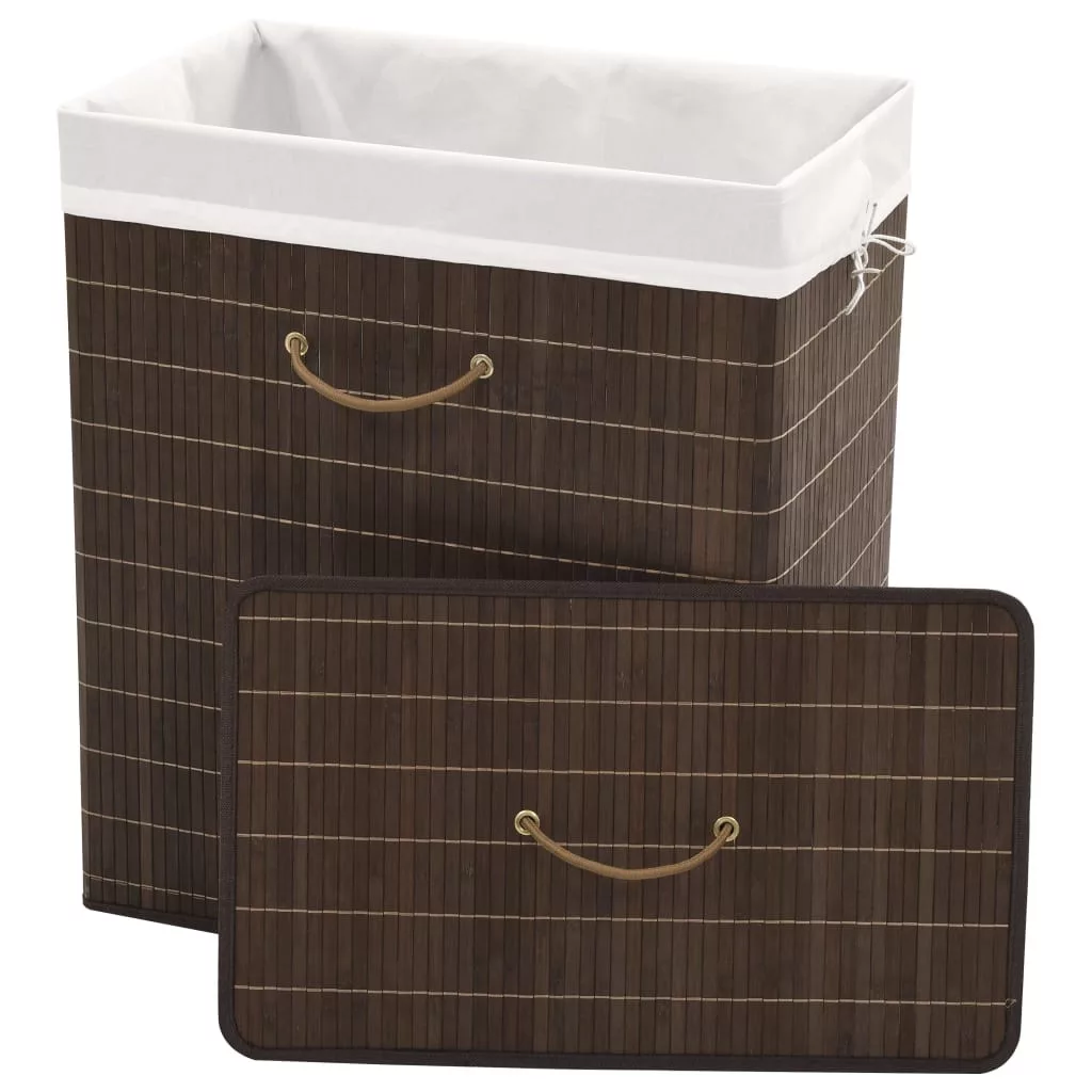 sötétbarna, téglalap alakú bambusz szennyestartó kosár