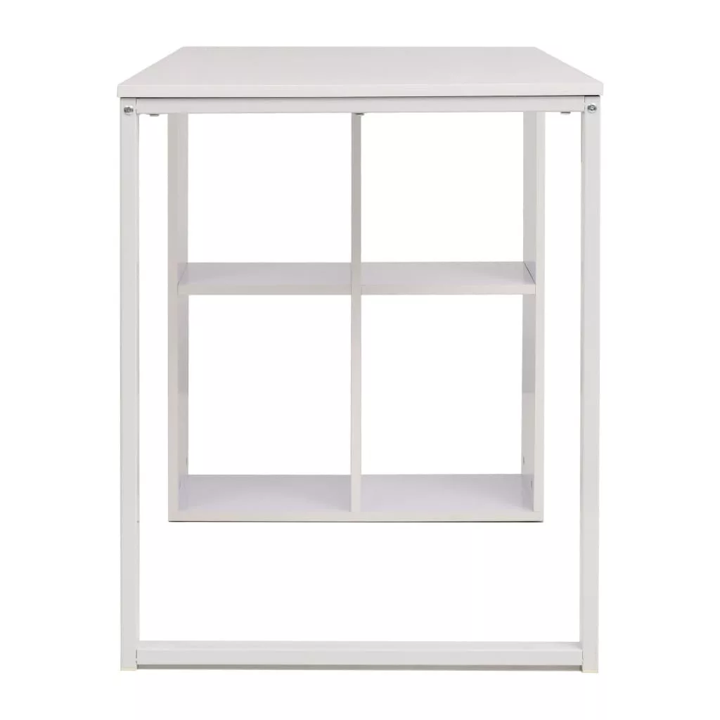 Modern íróasztalunk nagyszerű kiegészítője lesz tanulószobájának vagy irodájának. Ez az íróasztal faforgácslapból készült asztallappal és acél lábakkal rendelkezik, így rendkívül stabil, időtálló és nem igényel sok karbantartást. A négy nagyméretű oldalsó tárolórekesz elegendő helyet kínál a tanuláshoz szükséges kellékek számára, például könyvek, mappák vagy egyéb hasznos holmik elérhető közelségben történő tárolásához. A melamin bevonatnak köszönhetően az íróasztal egy nedves ronggyal könnyen tisztítható. Az íróasztal könnyen összeszerelhető.
