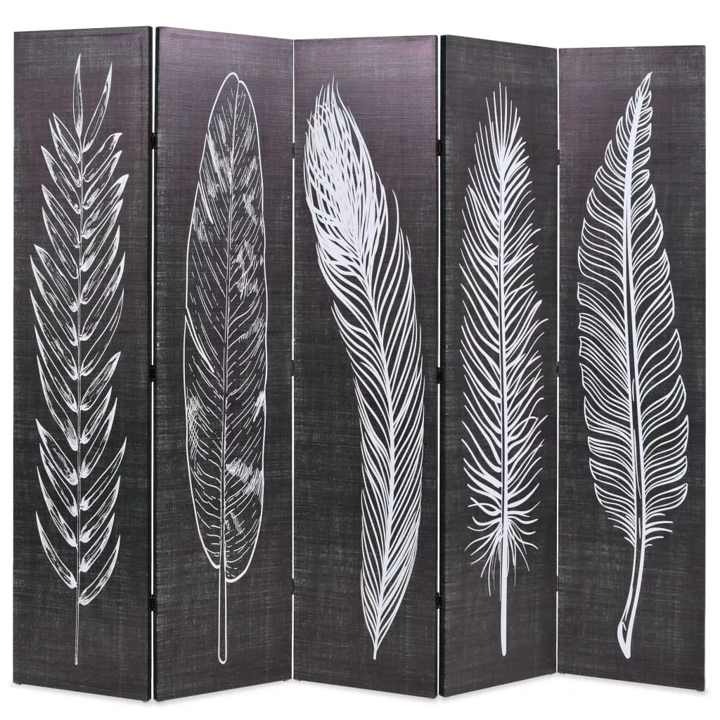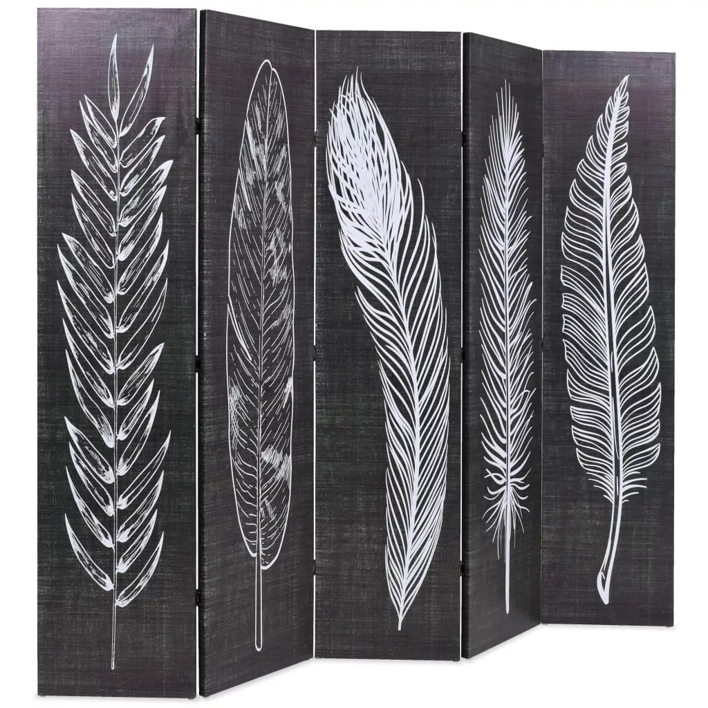 fekete-fehér toll mintás paraván 200 x 170 cm