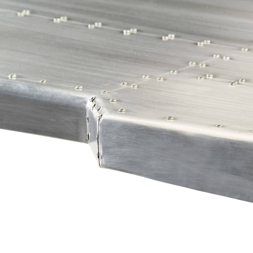 Ez a vintage stílusú, örökzöld megjelenésű repülős tematikájú íróasztal egy kis indusztriális hangulatot visz dolgozószobájába vagy irodájába. Ezt a megjelenésével repülőgépeket idéző dolgozóasztalt tömör mangófa anyaga és polírozott alumíniumpanelekkel borított, szabadon hagyott acélcsavarokkal tarkított felülete rendkívül tartós bútordarabbá teszi. A rézszínű acéllábak és a szegecsekből álló mintázat indusztriális megjelenést kölcsönöz ennek az aviátor-asztalnak. Nagy asztallapján bőven jut hely aktáknak, iratoknak, könyveknek és egyéb holminak. Az íróasztal összeszerelése egyszerű. Felhívjuk figyelmét, hogy a szegecselés mintázata bútoronként eltérhet, így mindegyik asztal egyedi; a szállítás véletlenszerűen történik.