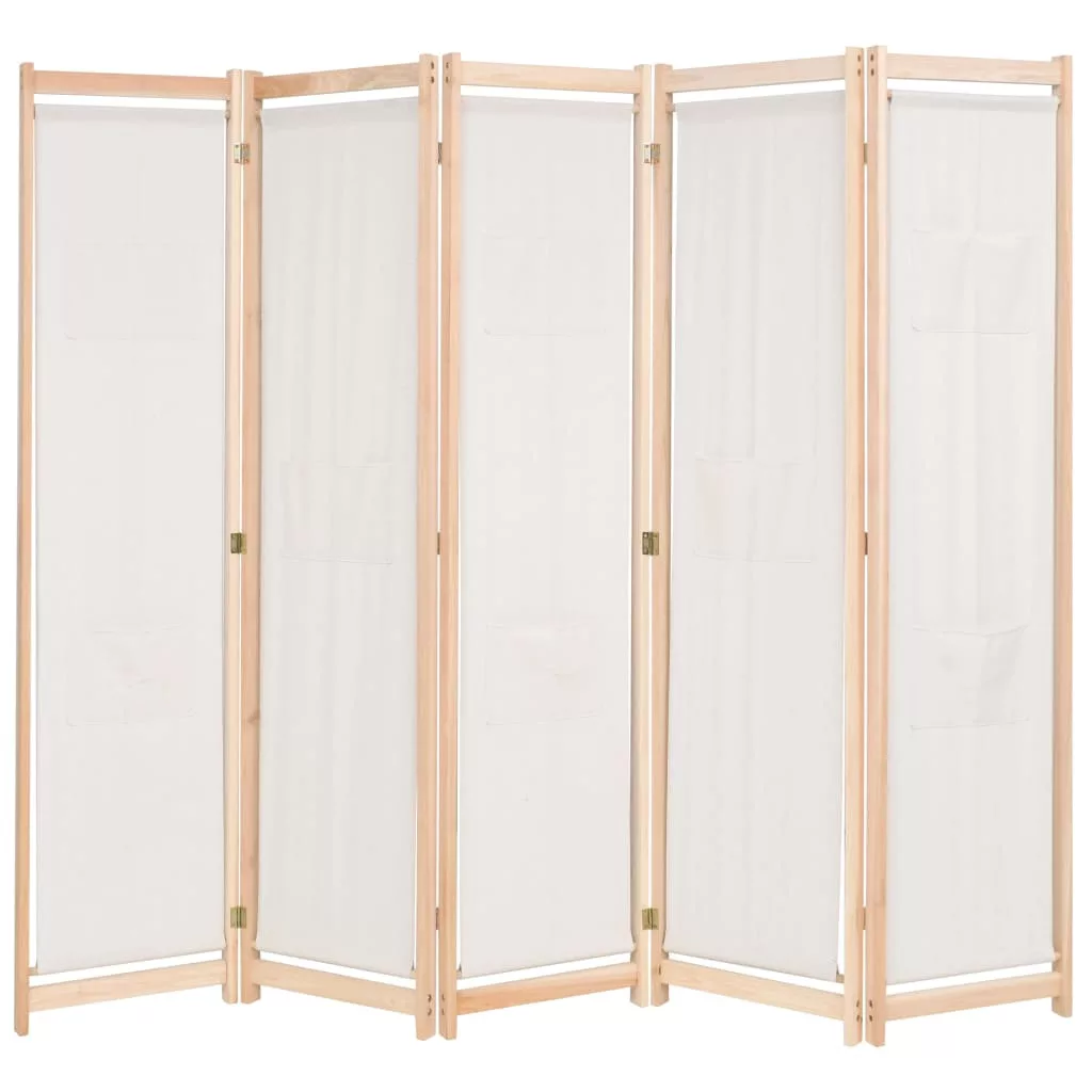 krémszínű 5-paneles szövetparaván 200 x 170 x 4 cm