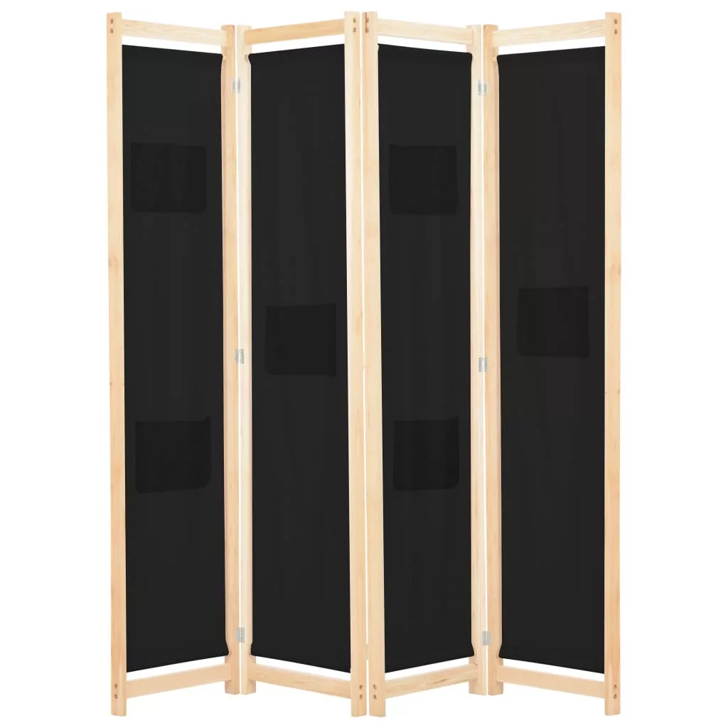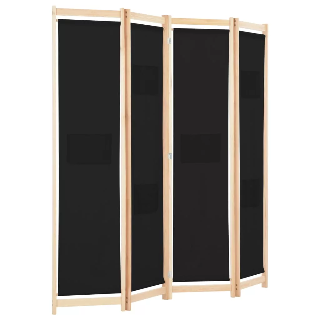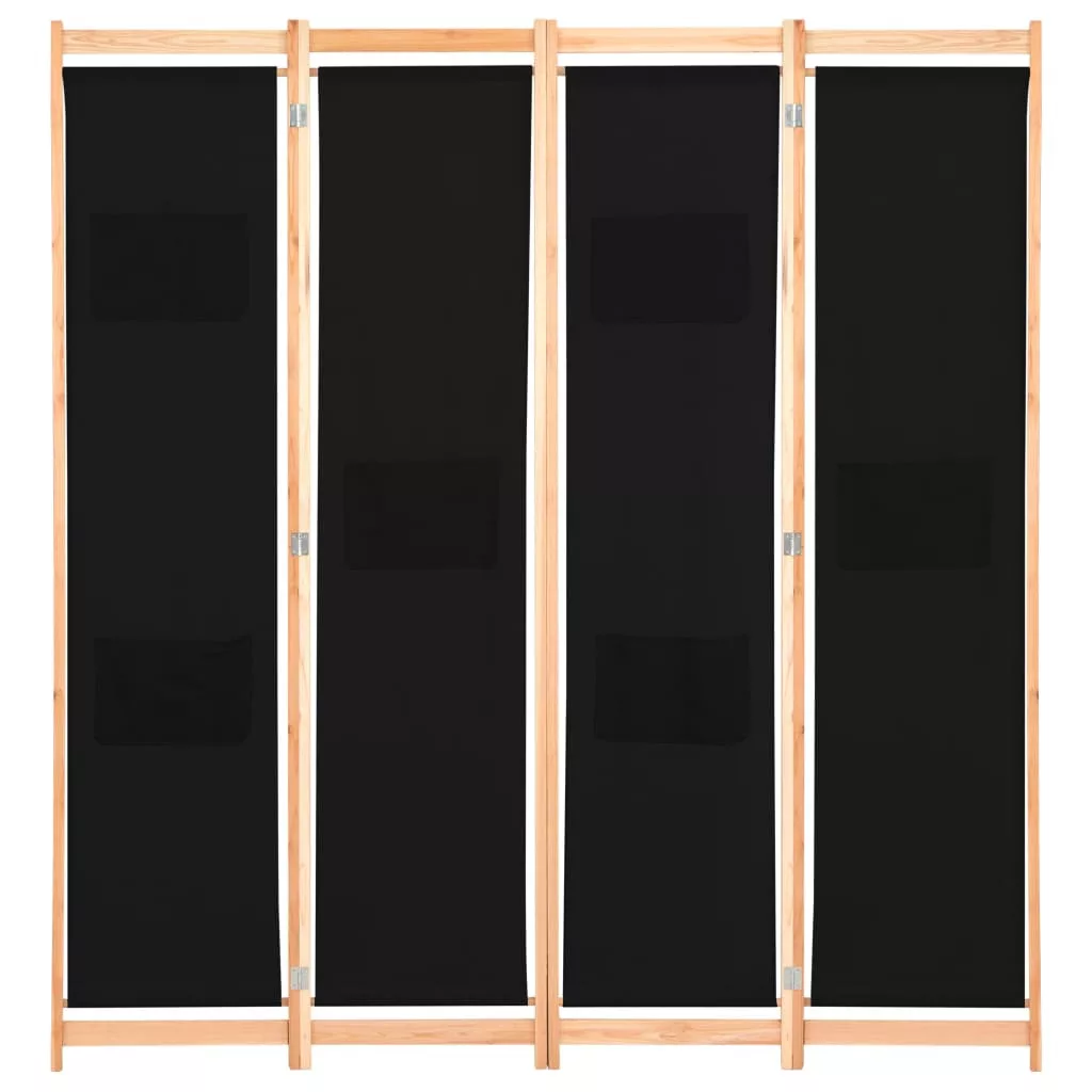fekete 4-paneles szövetparaván 160 x 170 x 4 cm