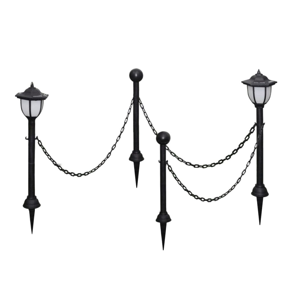 4 db napelemes lámpa lánckerítéssel és cölöpökkel