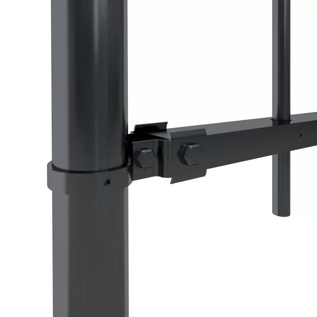 Határolja el kertjét, otthonát vagy sétálóösvényét ezzel az elegáns kerti kerítéssel! Ez a kiváló minőségű acélkerítés 5 kerítéspanelből és 6 póznából áll, teljes hossza pedig 8,5 m. Ezzel a masszív, karbantartást nem igénylő kerítéssel kertjét, otthonát vagy kereskedelmi ingatlanát biztonságosan elhatárolhatja. A függőleges elemek tetején lándzsahegy található, a vízszintes elemek merevítésként szolgálnak a keret megerősítéséhez, így ez a kerítés magas fokú biztonságot nyújt. Nagy teherbírású, porszórt bevonatú acélból készült, így ez a kültéri kerítés erős és stabil, masszív és strapabíró. A mellékelt szerelési anyagokkal a kerti kerítés könnyen összeszerelhető. Megjegyzés: Több elemet is vehet, így a kerítés igény szerint meghosszabbítható.