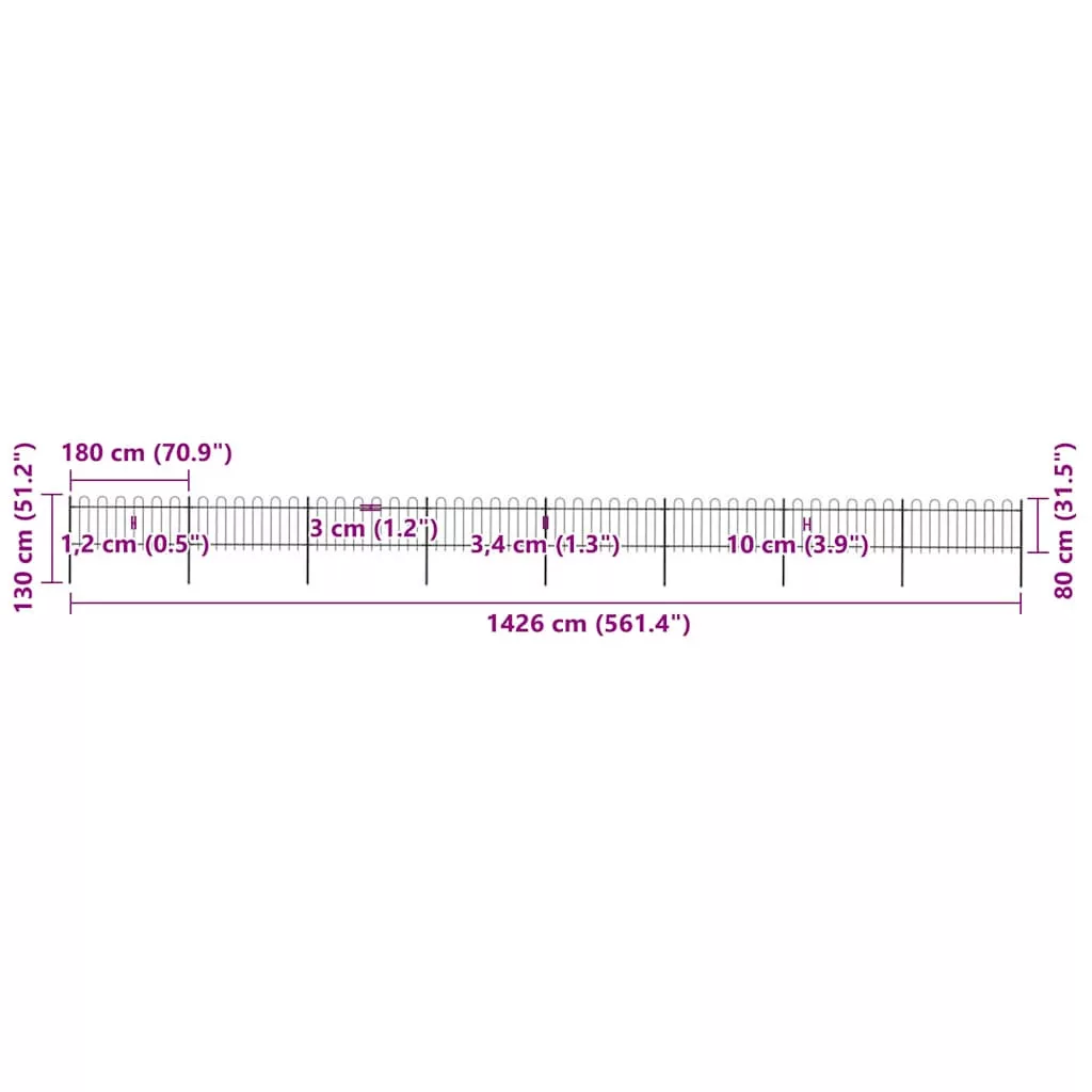 fekete hajlított tetejű acélkerítés 13,6 x 0,8 m