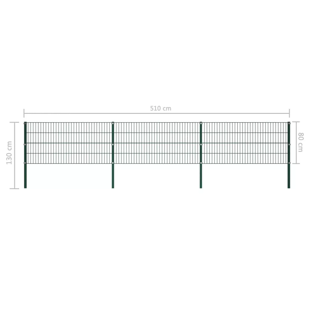 zöld vas kerítéspanel oszlopokkal 5,1 x 0,8 m