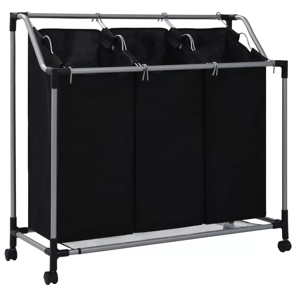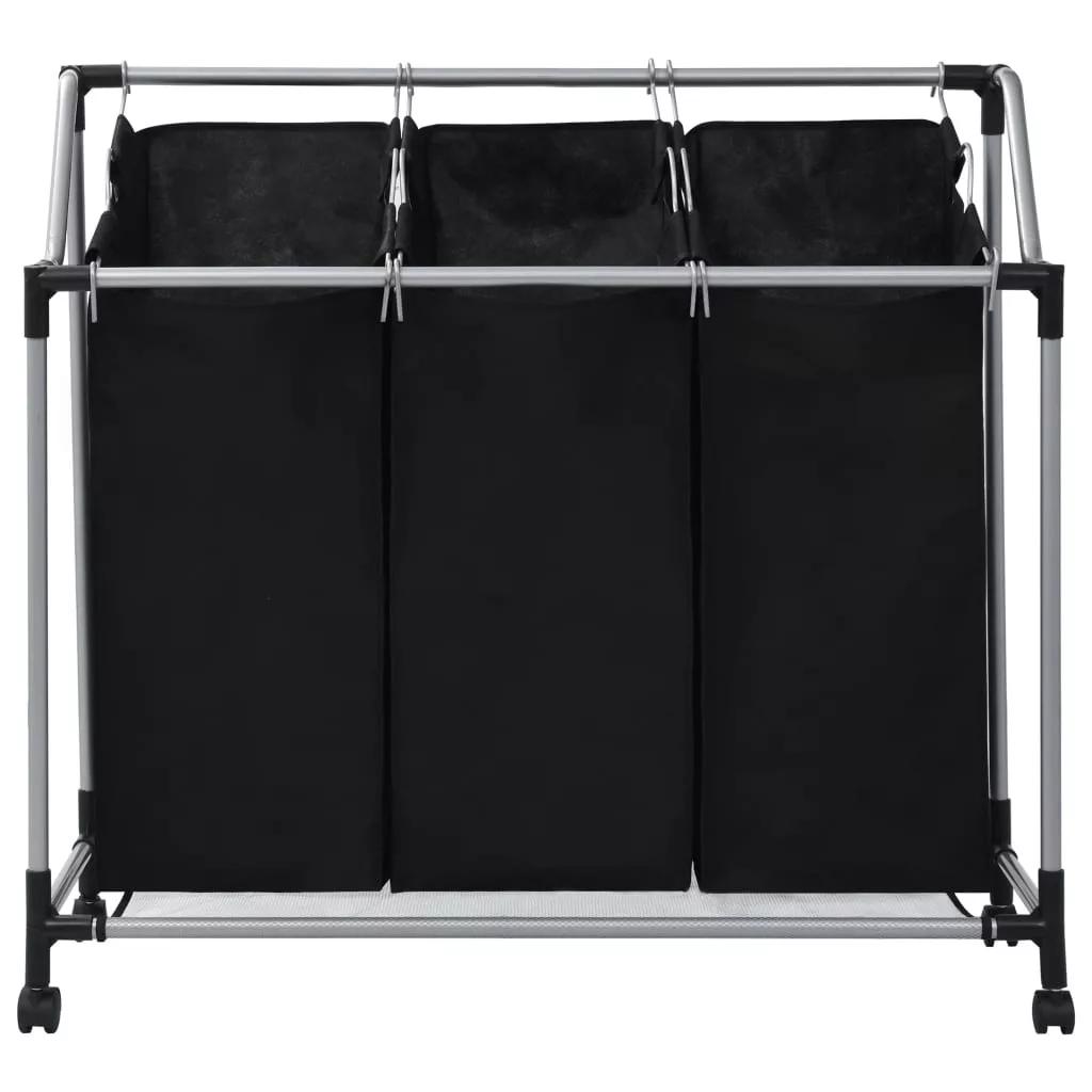 Gondoljon csak bele, mennyire egyszerű és kényelmes lenne piszkos ruháit rendezetten tárolni és átvinni a mosókonyhába – jól használható szennyesszortírozónk mindezt lehetővé teszi! Ezzel a szennyestartóval rendben tarthatja mosókonyháját, fürdőszobáját vagy kamráját, és garantáltan megfelel majd az igényeinek. Három nagyméretű, könnyen kivehető szennyeszsákkal rendelkezik, melyeket az acélfogantyúknál fogva vihet a mosógéphez. A szennyestartó kosár két végén található görgők és fogantyúk megkönnyítik a mozgatását. A tartós acélváz nagy teherbírású; legfeljebb 20 kg szennyes fér el benne. Összeszerelése és karbantartása is egyszerű.