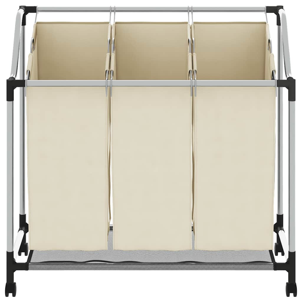 krémszínű acél szennyesszortírozó 3 zsákkal