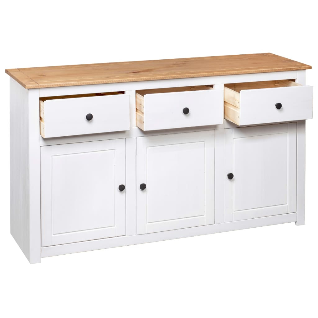 fehér panama stílusú tömör fenyőfa tálalószekrény 135x40x80 cm