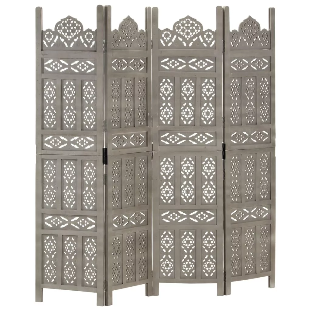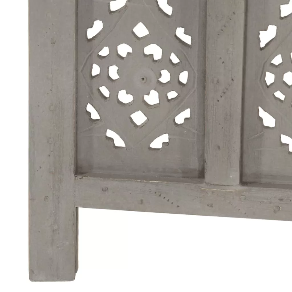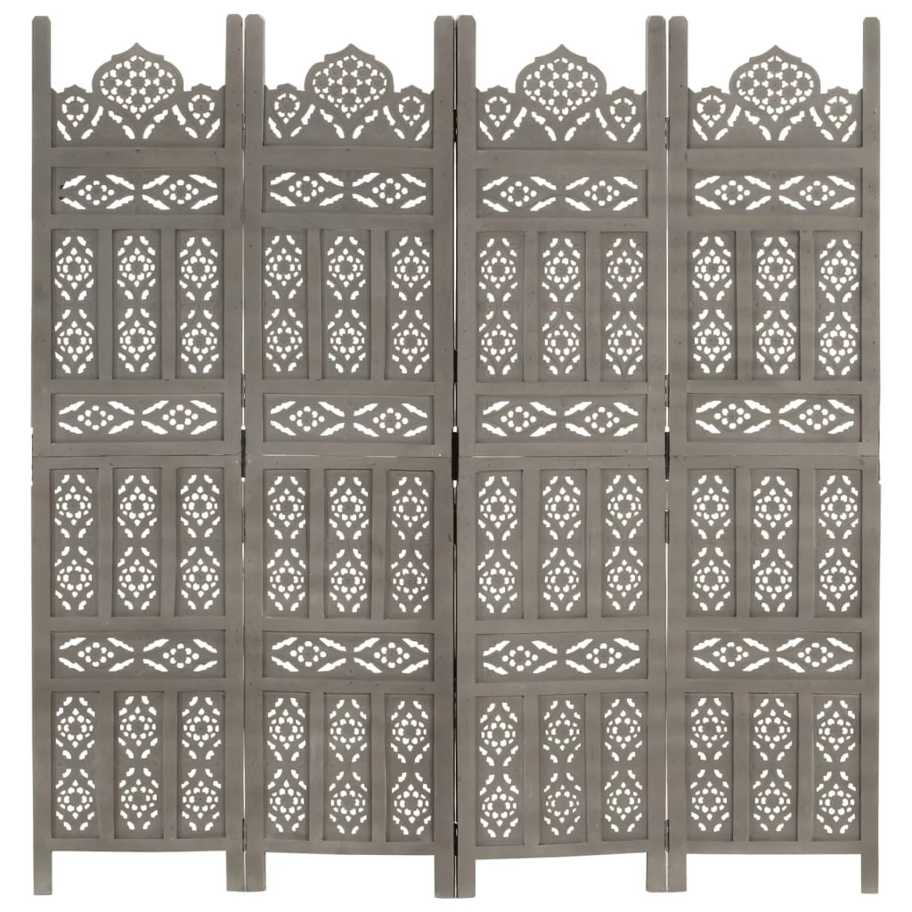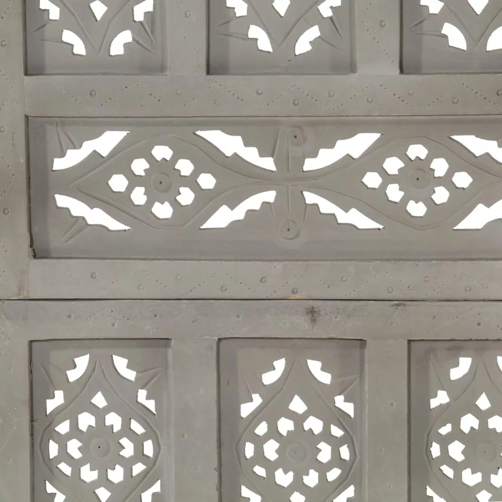 4-paneles szürke mangófa faragott térelválasztó 160 x 165 cm