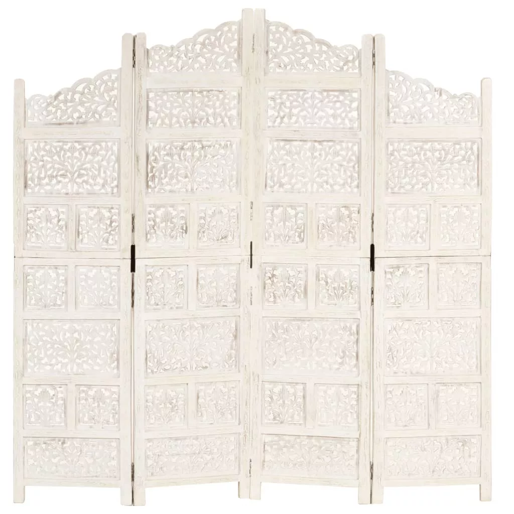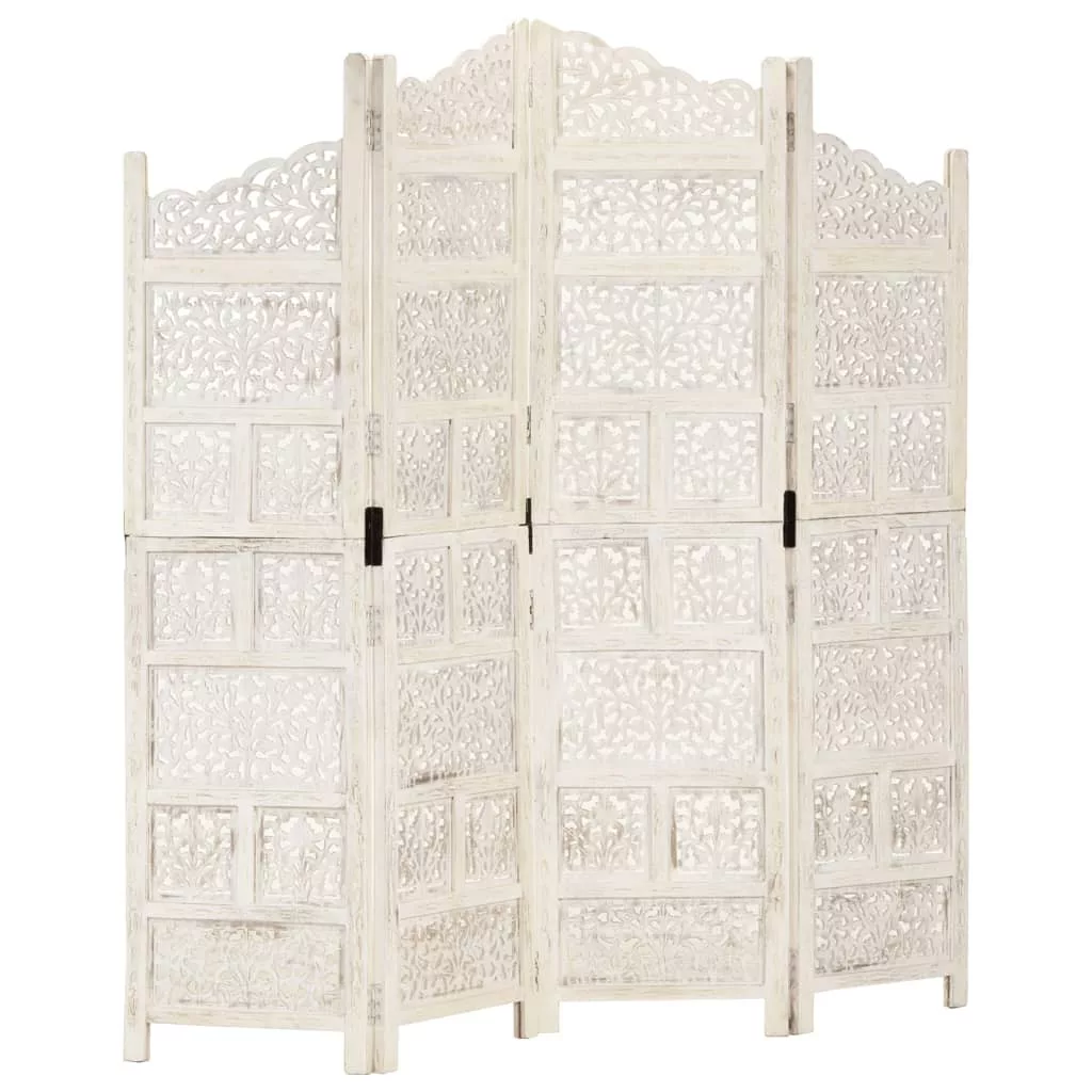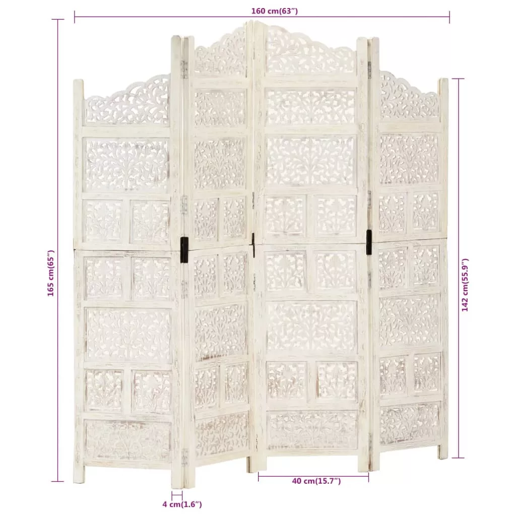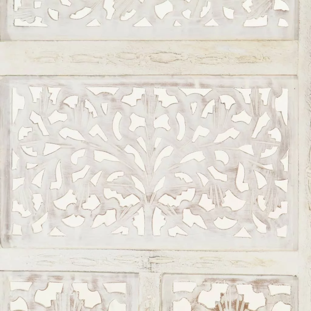 4-paneles fehér mangófa kézzel faragott térelválasztó 160x165cm