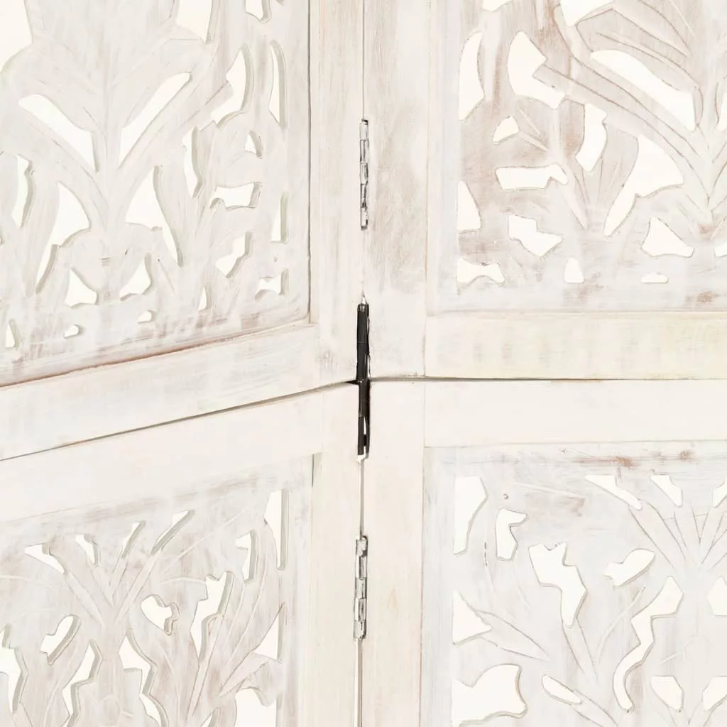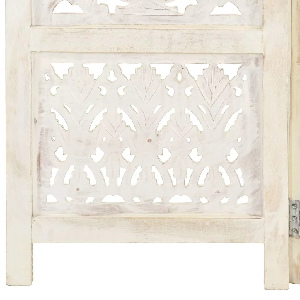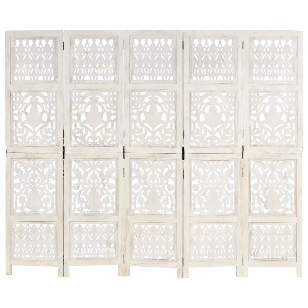 5-paneles fehér mangófa kézzel faragott térelválasztó 200x165cm