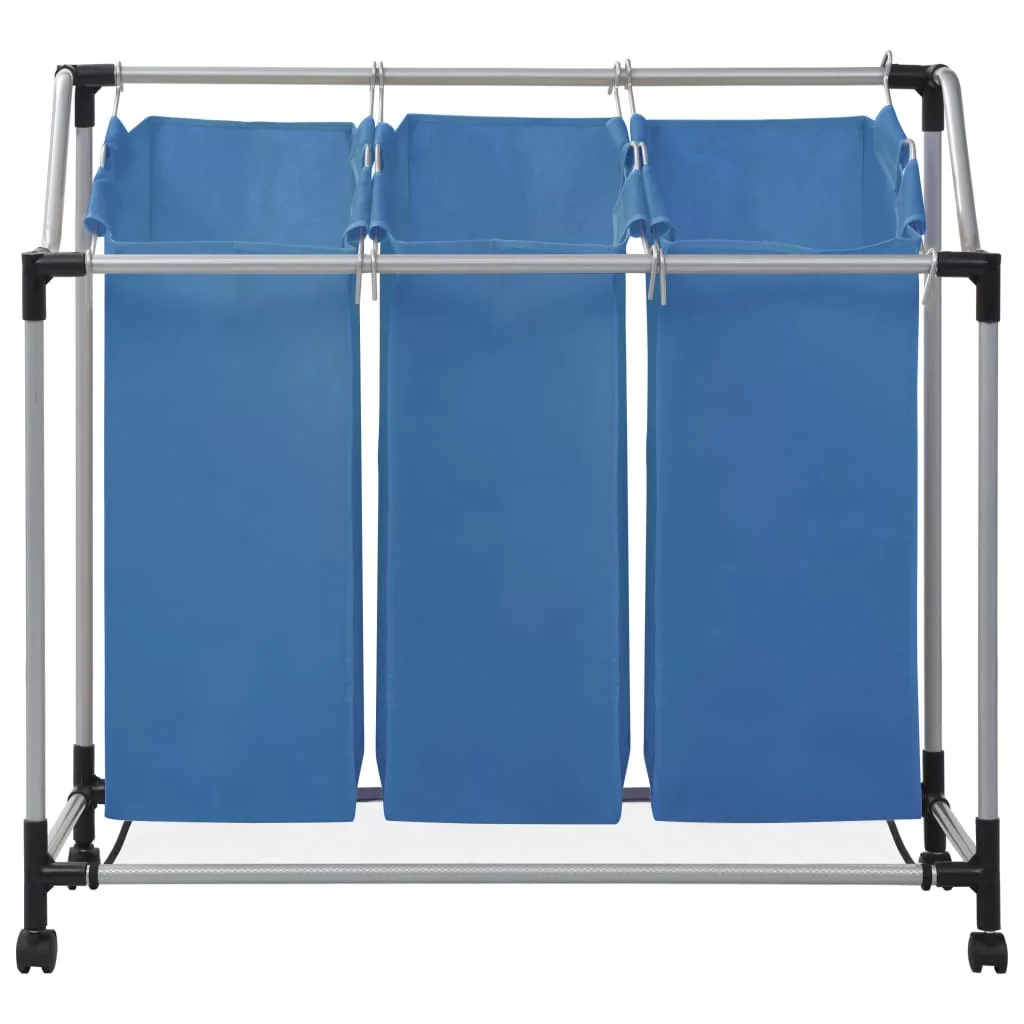 Gondoljon csak bele, mennyire egyszerű és kényelmes lenne piszkos ruháit rendezetten tárolni és átvinni a mosókonyhába – jól használható szennyesszortírozónk mindezt lehetővé teszi! Ezzel a szennyestartóval rendben tarthatja mosókonyháját, fürdőszobáját vagy kamráját, és garantáltan megfelel majd az igényeinek. Három nagyméretű, könnyen kivehető szennyeszsákkal rendelkezik, melyeket az acélfogantyúknál fogva vihet a mosógéphez. A szennyestartó kosár két végén található görgők és fogantyúk megkönnyítik a mozgatását. A tartós acélváz nagy teherbírású; legfeljebb 20 kg szennyes fér el benne.