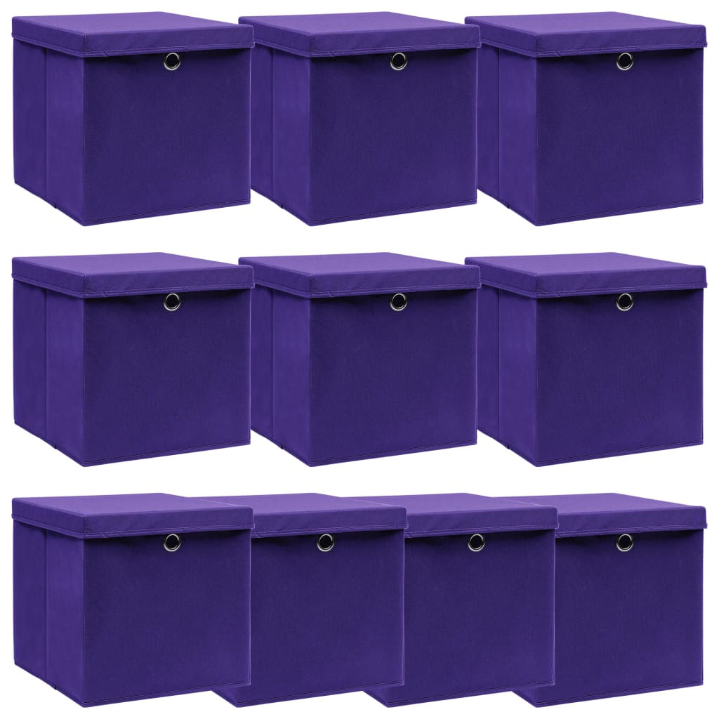 10 db lila szövet tárolódoboz fedéllel 32 x 32 x 32 cm