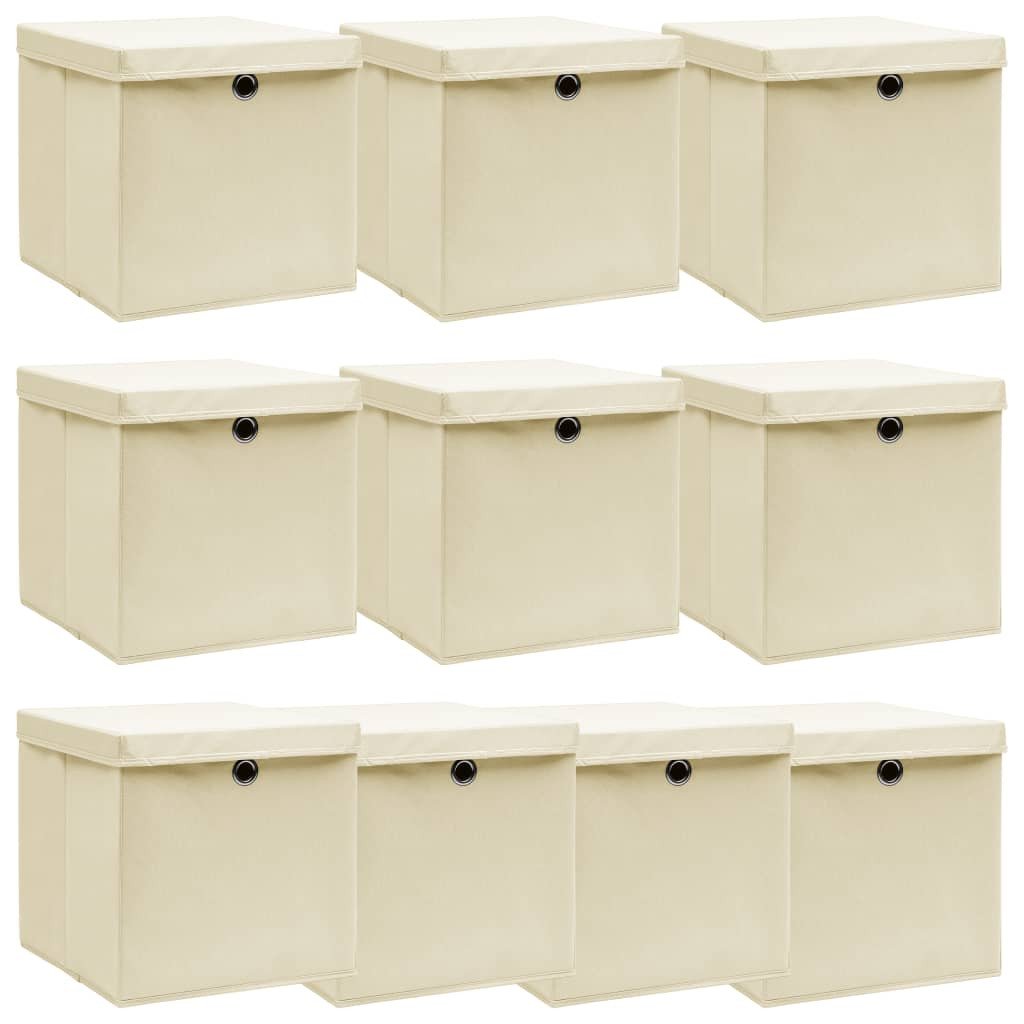 10 db krémszínű szövet tárolódoboz fedéllel 32 x 32 x 32 cm