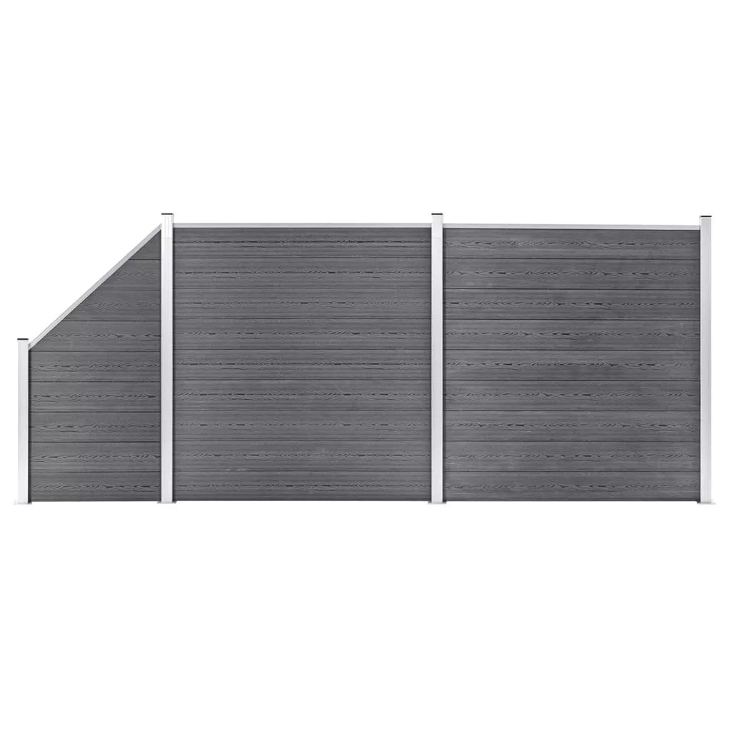 2 négyszögletes és 1 ferde szürke WPC kerítéselem 446 x 186 cm