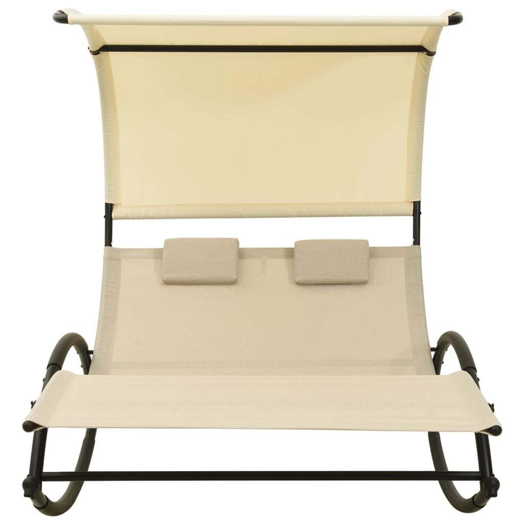 krémszínű kétszemélyes textilén napozóágy napellenzővel