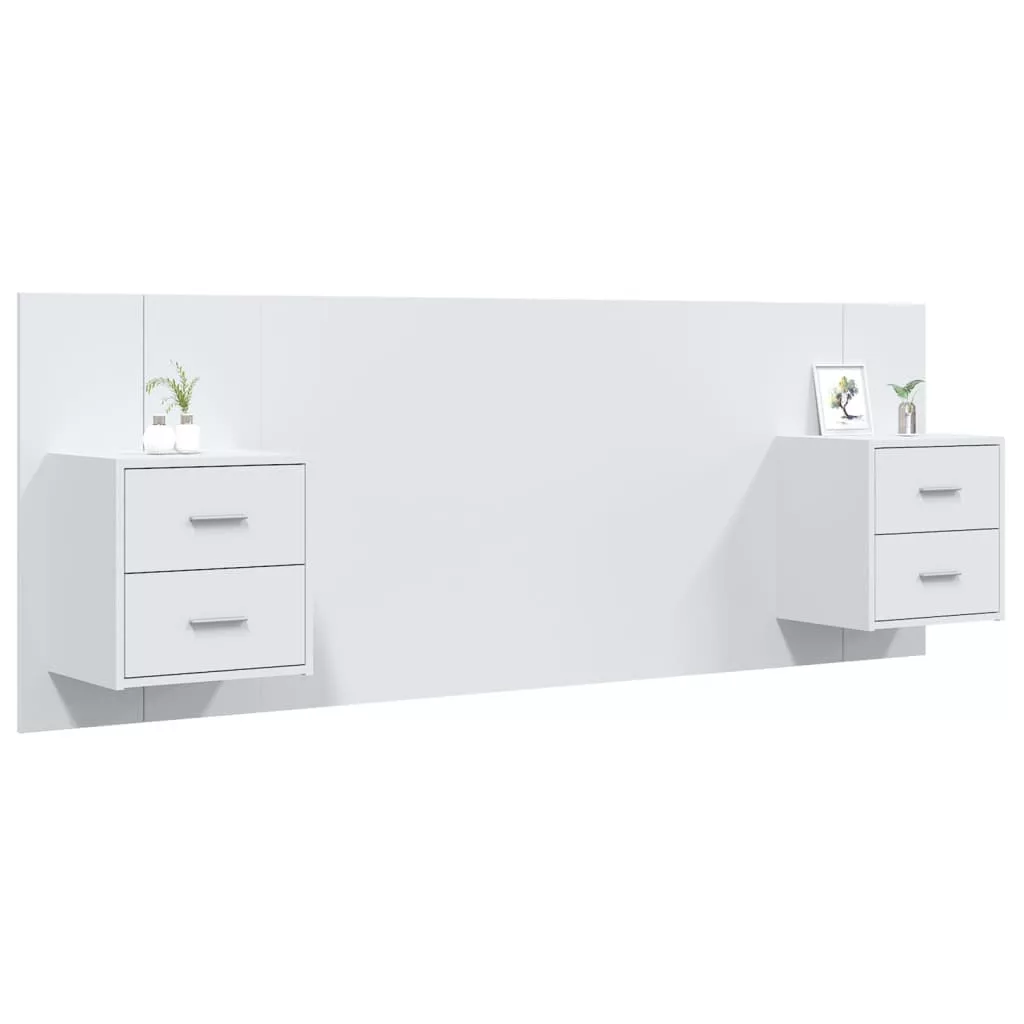 fehér szerelt fa ágyfejtámla szekrényekkel