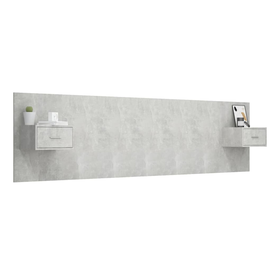 betonszürke szerelt fa ágyfejtámla szekrényekkel