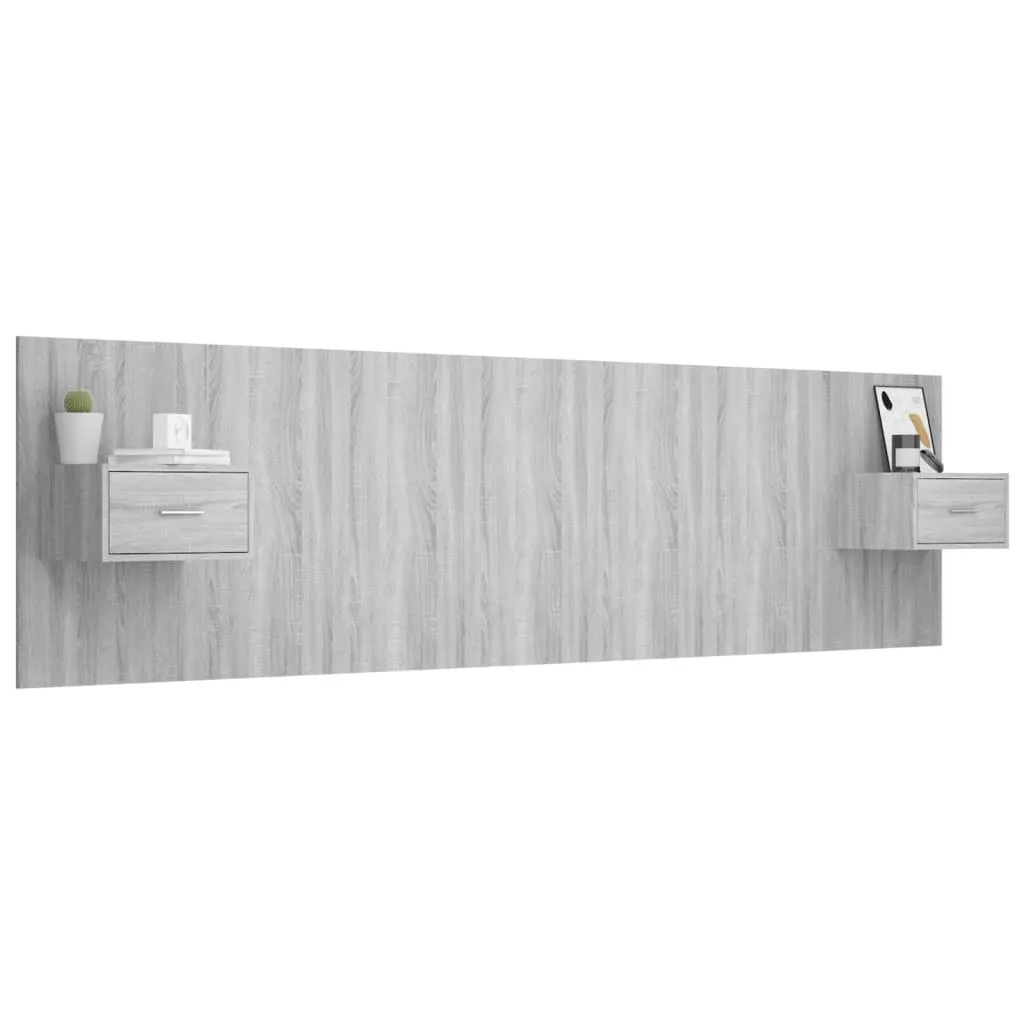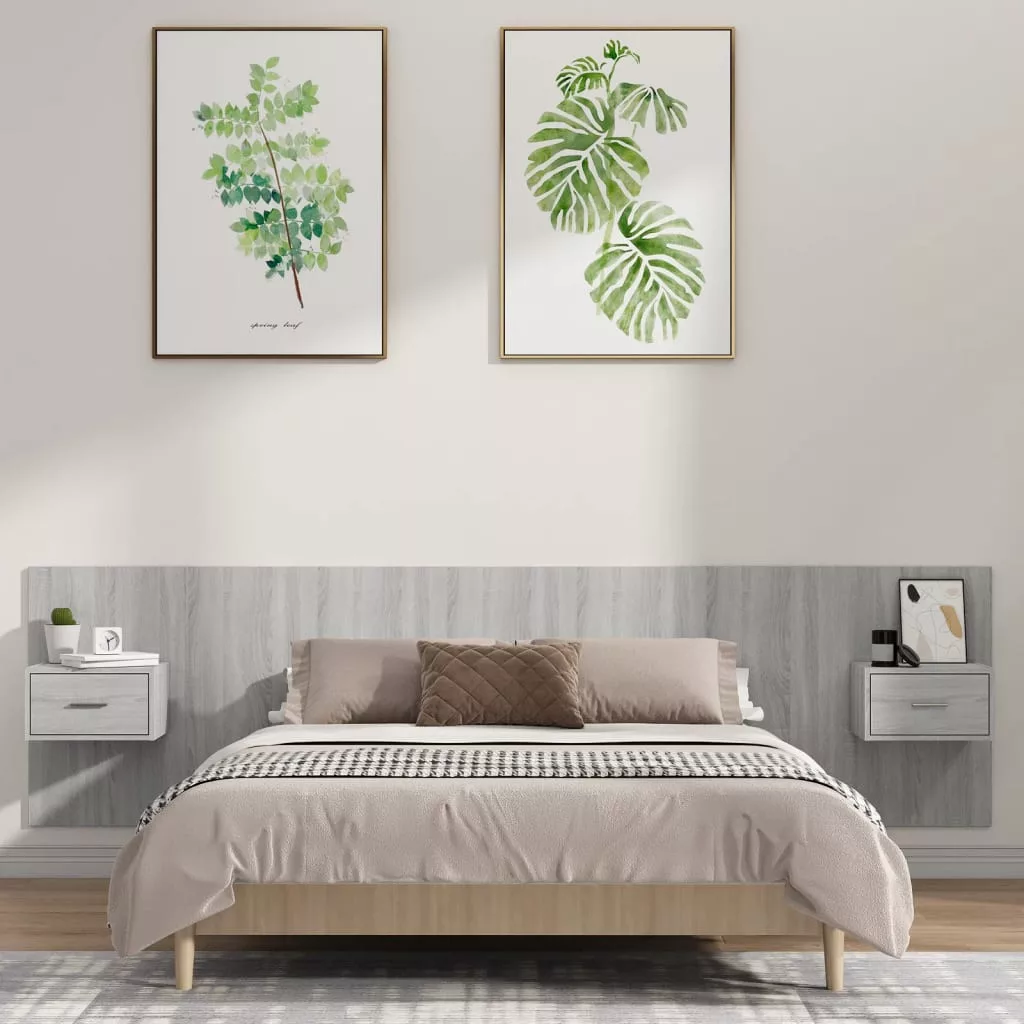 szürke sonoma színű szerelt fa ágyfejtámla szekrényekkel