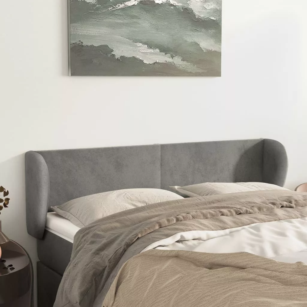 világosszürke bársony fejtámla szárnyakkal 147x23x78/88 cm