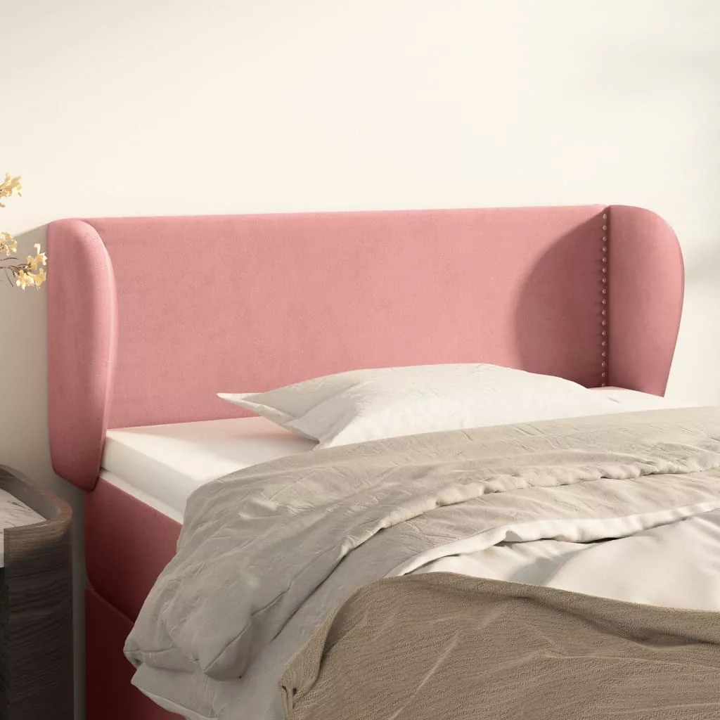 rózsaszín bársony fejtámla szárnyakkal 103x23x78/88 cm