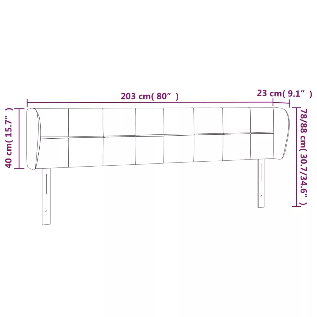 Ez a klasszikus, szárnyas fejtámla stílusos kialakítással rendelkezik teljes megjelenést kölcsönözve ágykeretének, és minden hálószobához illik. Puha bársony: A bársony egy puha, fényűző anyag, amely sűrű, egyenletesen vágott sima szálairól ismert. A bársony anyag jellegzetesen puha, így kényelmes tapintású.Erős és stabil lábak: A fa lábak szilárdságot és stabilitást biztosítanak.Állítható magasság: Az ágy fejtámla magassága tetszés szerint állítható.Kiváló támaszték: Ez az ágyfejléc kiváló háttámaszt nyújt, amikor felül az ágyban olvasni vagy tévét nézni. Megjegyzés:A szállítmány csak a fejtámlát tartalmazza. Az ágyrács és a matrac nincs mellékelve. A hozzáillő kereteket és matracokat megtekintheti áruházunkban.Az egyszerű összeszerelés érdekében minden termékhez mellékelünk összeszerelési útmutatót.