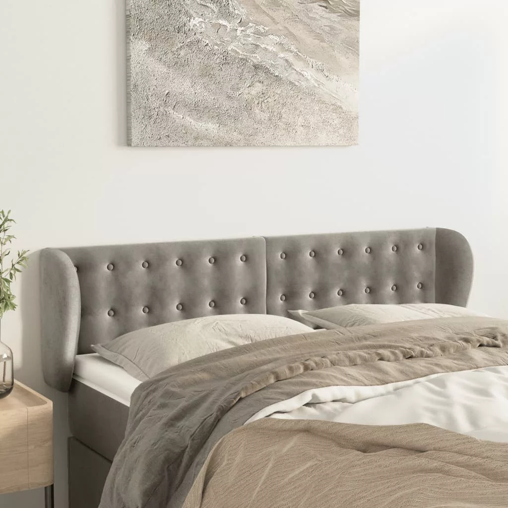 világosszürke bársony fejtámla szárnyakkal 147x23x78/88 cm