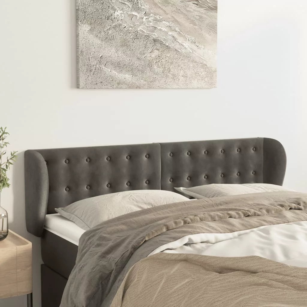sötétszürke bársony fejtámla szárnyakkal 147x23x78/88 cm