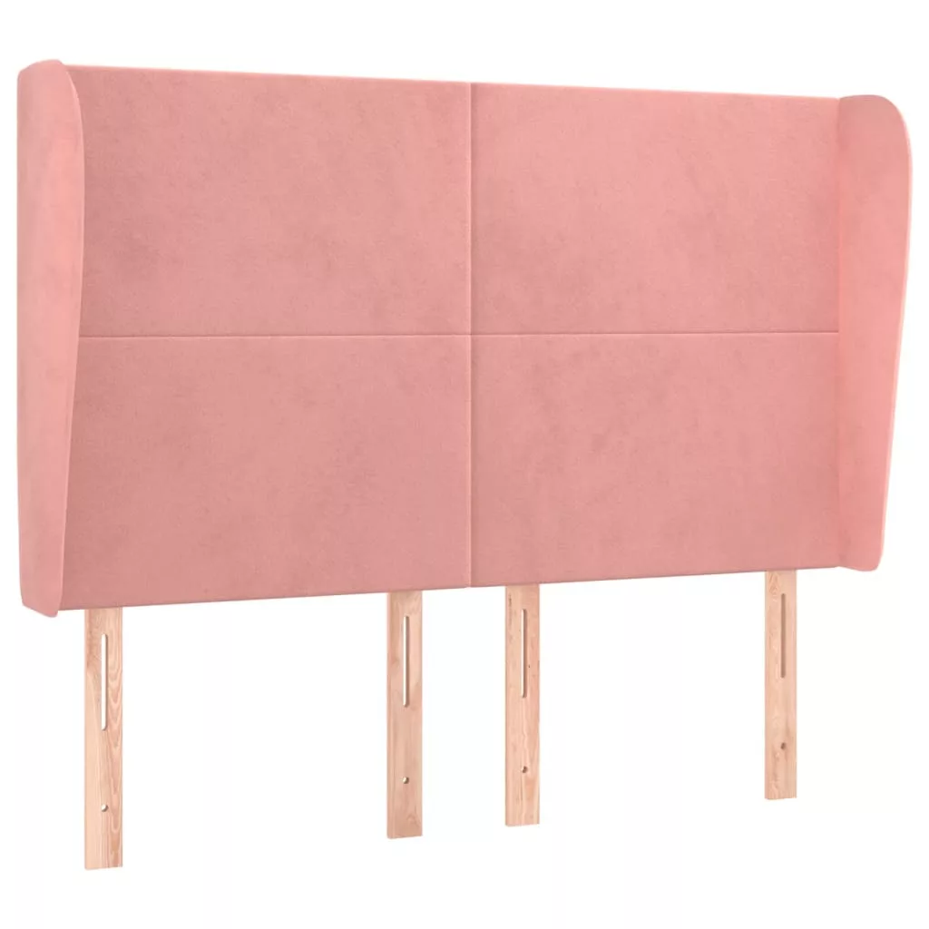 rózsaszín bársony fejtámla szárnyakkal 147x23x118/128 cm