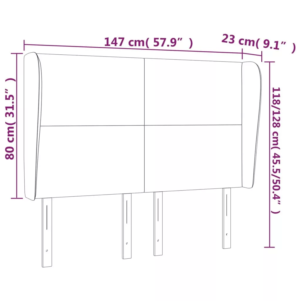 Ez a klasszikus, szárnyas fejtámla stílusos kialakítással rendelkezik teljes megjelenést kölcsönözve ágykeretének, és minden hálószobához illik. Puha bársony: A bársony egy puha, fényűző anyag, amely sűrű, egyenletesen vágott sima szálairól ismert. A bársony anyag jellegzetesen puha, így kényelmes tapintású.Erős és stabil lábak: A fa lábak szilárdságot és stabilitást biztosítanak.Állítható magasság: Az ágy fejtámla magassága tetszés szerint állítható.Kiváló támaszték: Ez az ágyfejléc kiváló háttámaszt nyújt, amikor felül az ágyban olvasni vagy tévét nézni. Megjegyzés:A szállítmány csak a fejtámlát tartalmazza. Az ágyrács és a matrac nincs mellékelve. A hozzáillő kereteket és matracokat megtekintheti áruházunkban.Az egyszerű összeszerelés érdekében minden termékhez mellékelünk összeszerelési útmutatót.