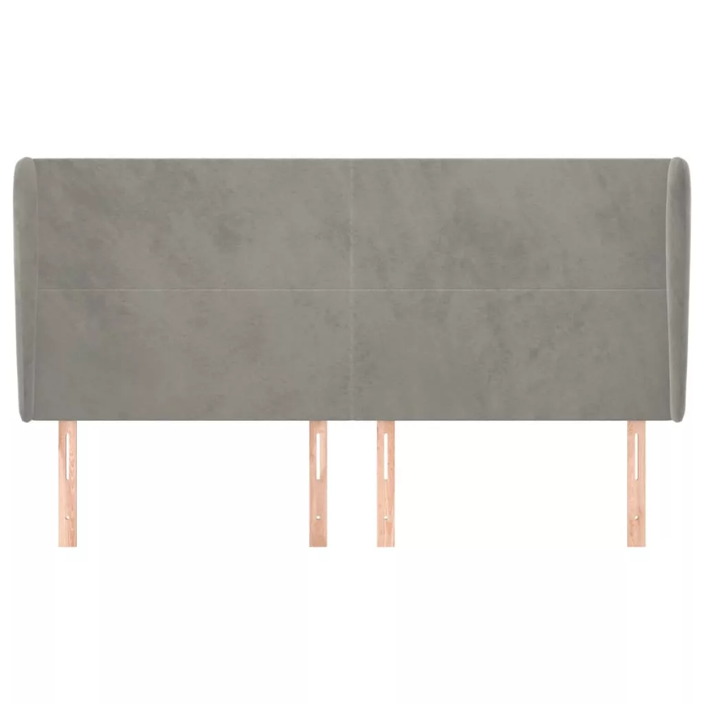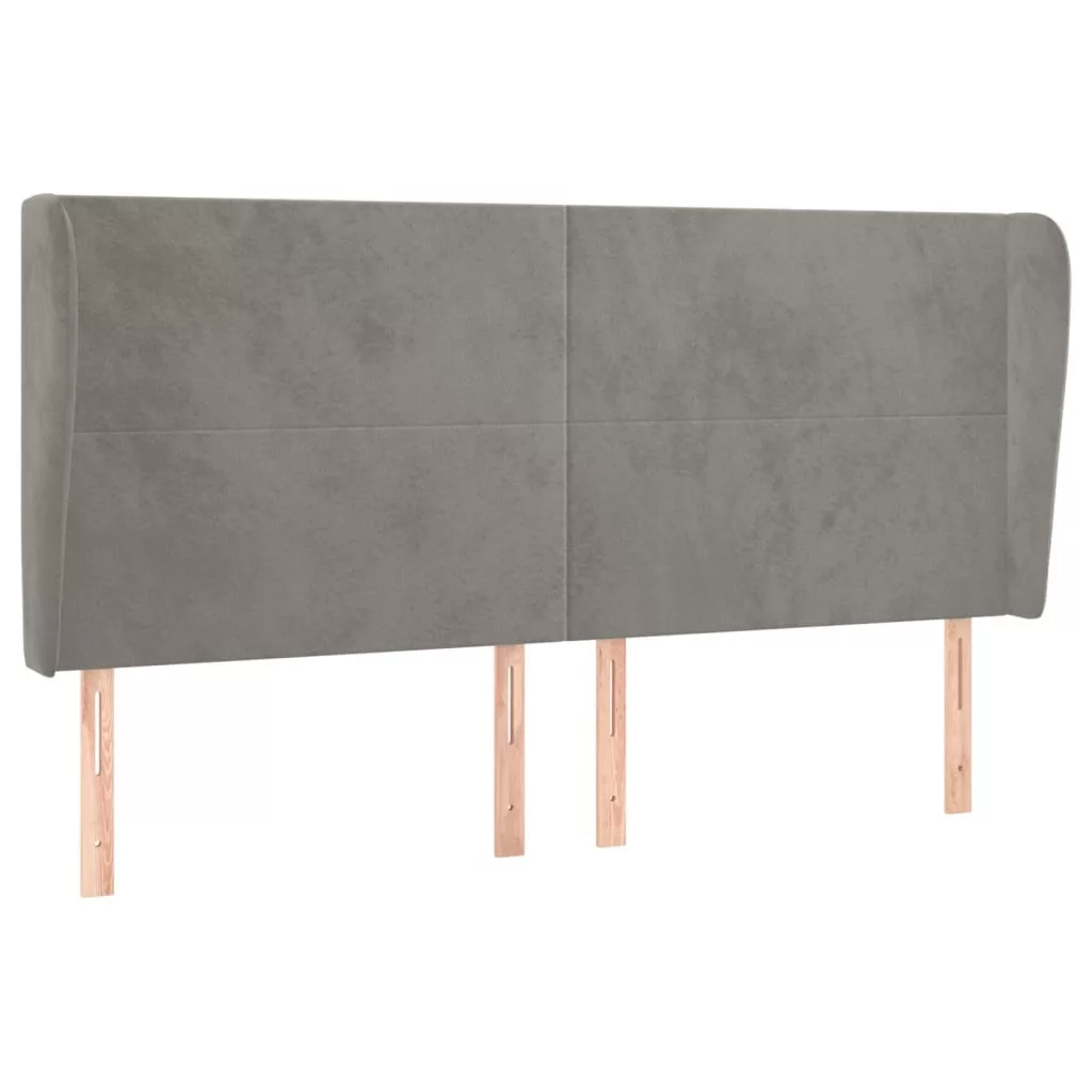 világosszürke bársony fejtámla szárnyakkal 183x23x118/128 cm