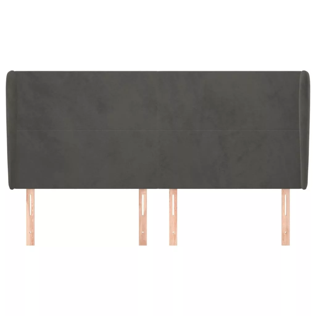 sötétszürke bársony fejtámla szárnyakkal 203x23x118/128 cm