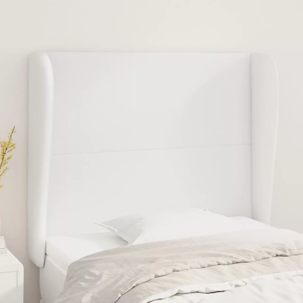 fehér műbőr fejtámla szárnyakkal 93x23x118/128 cm